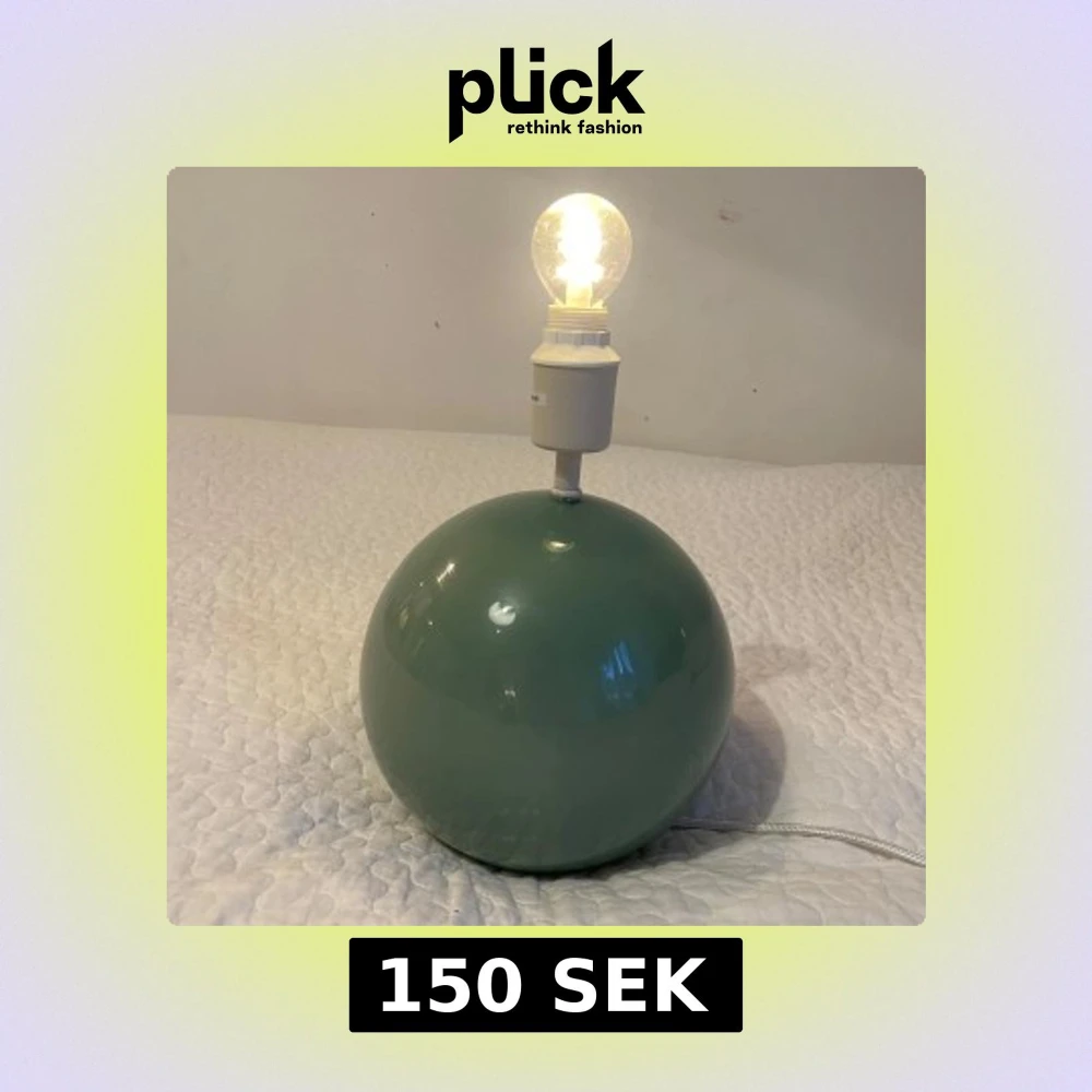 Modern bordslampa med rund, grön/blå fot i blank finish. Lampan har vit sockel och tygklädd strömkabel. Fungerar och är i gott skick, inga synliga repor eller skador. Passar utmärkt som dekorativ belysning i hemmet. QC-märkt på undersidan.