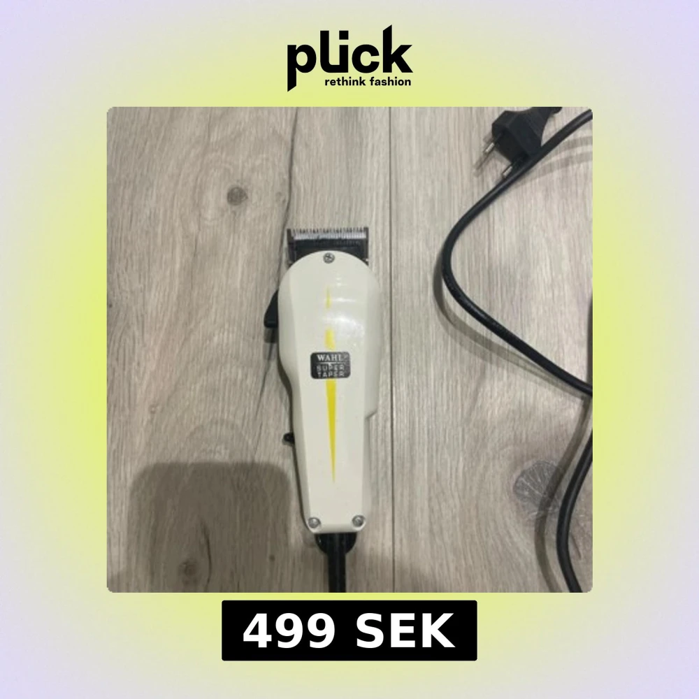 Professionell hårtrimmer Wahl Super Taper med sladd, inklusive kammar, hårklämmor och kam. Trimmern är i gott skick med endast mindre yttre slitage. Perfekt för både hemmabruk och salong. Kraftfull motor och justerbara längder för flexibel styling.