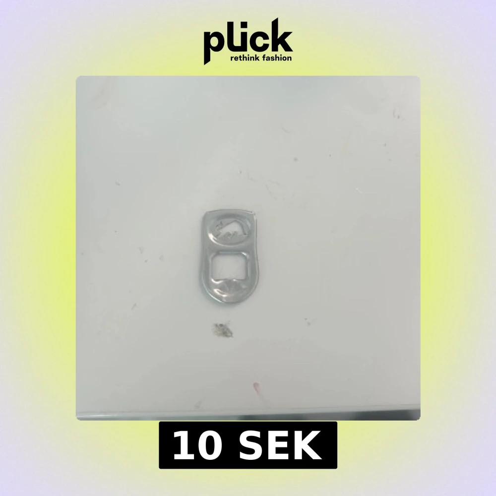 Bilderna visar en aluminiumburkflik, vanligtvis använd för att öppna dryckesburkar. Produkten är inte elektronik och har inga synliga elektroniska komponenter, funktioner eller märkning. Inga defekter eller slitage utöver normalt bruk syns.