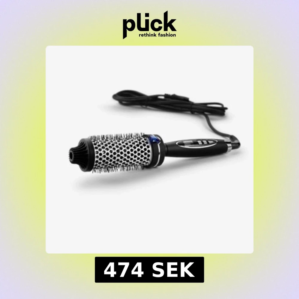 Denna produkt är en elektrisk varmluftsborste för hårstyling, med rund borste och justerbara värmeinställningar. Perfekt för att skapa volym och lockar. Produkten ser ut att vara i gott skick utan synligt slitage. Sladd och kontroller är intakta.