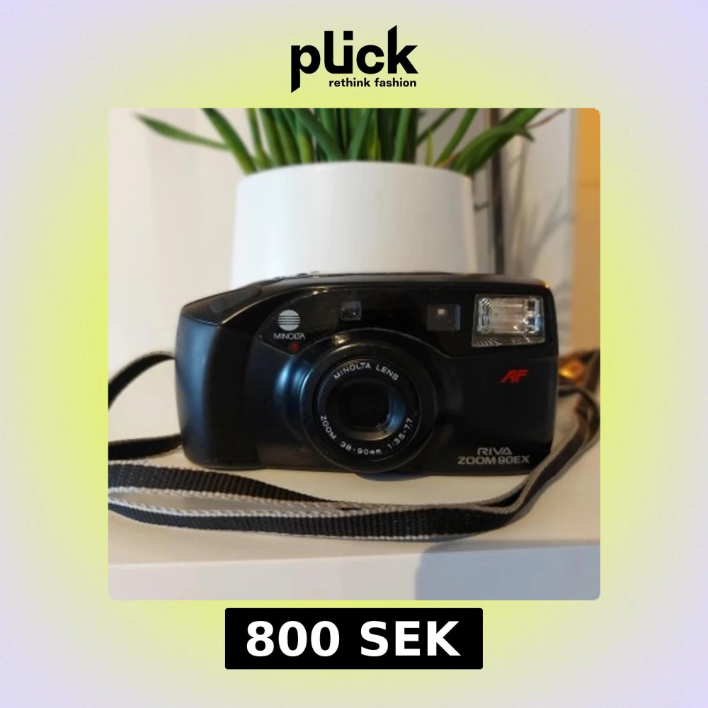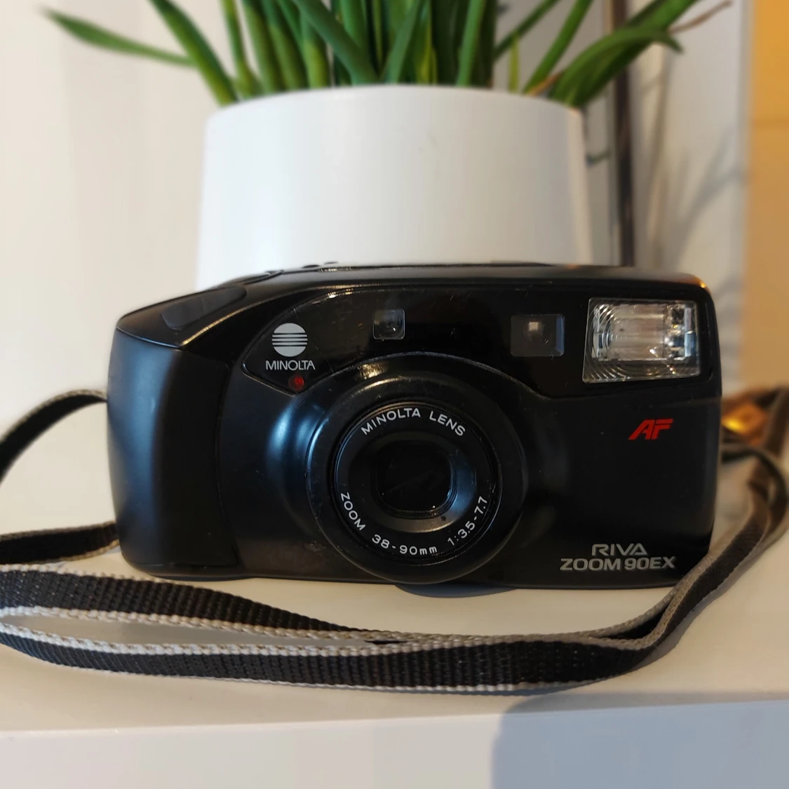 Minolta Riva Zoom 90EX är en kompakt analog kamera med autofokus och zoomobjektiv (38-90mm, f/3.5-7.7). Kameran är i gott skick med mindre ytslitage, fungerar med 35mm film och har inbyggd blixt. Perfekt för dig som vill fotografera analogt med pålitlig prestanda. Batteri behövs bytas.