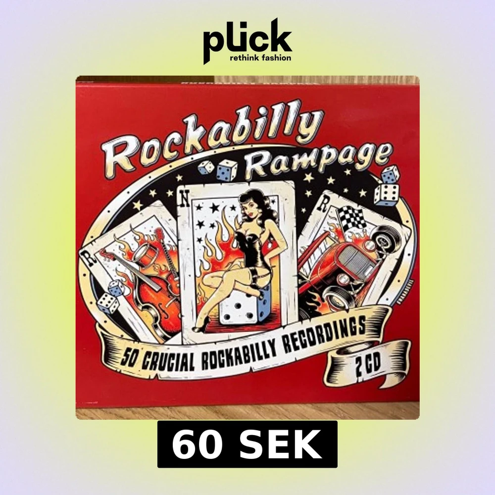 En samling med 50 klassiska rockabilly-låtar på 2 CD, fylld med energi, retrostil och ikoniska artister. Perfekt för dig som älskar rock'n'roll, bilar och vintagekultur. Omslaget har coola pinup- och hot rod-illustrationer som ger riktig 50-talskänsla.
