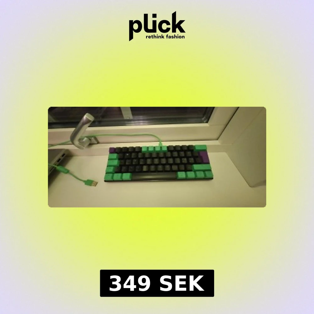 NOS C450 Mini Keyboard Pro Riddle med RGB-belysning och unika gröna, svarta och lila tangenter. Kompakt design, nordisk layout och USB-anslutning. Tangenter och hölje i fint skick, inga synliga defekter. Perfekt för gaming eller arbete där platsbesparing är viktigt och den är 60%.