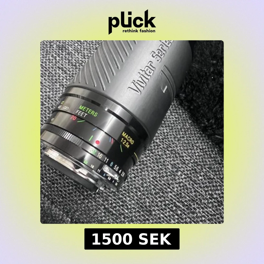 Vivitar Series 1 70-210mm f/2.8-4.0 macro zoomobjektiv med manuell fokus. Linsen har tydliga markeringar, macro 1:2.5x, och levereras med skyddspåse. Glaset ser klart ut och objektivet är i gott skick utan synliga repor eller skador.
