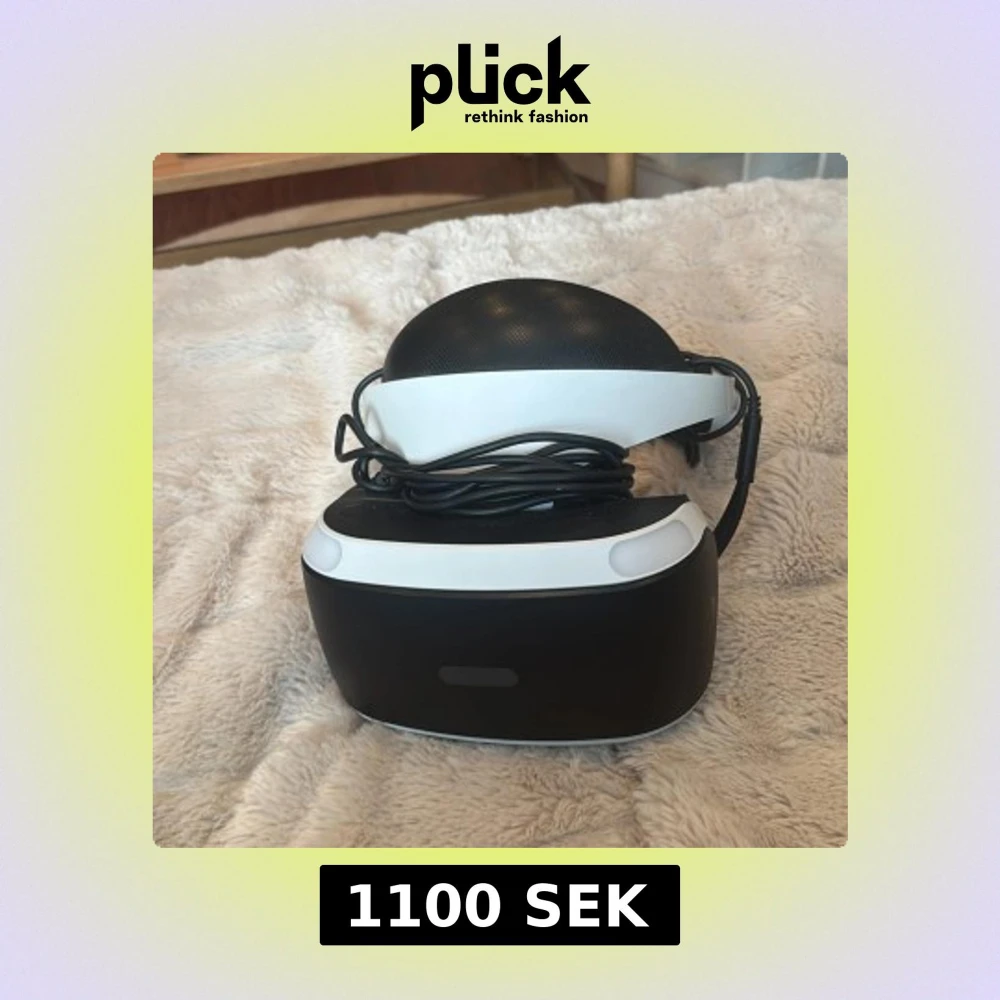 Sony PlayStation VR headset i svart och vitt. Komplett med kabel, linser i gott skick och justerbart huvudband. Inga synliga repor eller skador, endast lättare bruksslitage. Perfekt för en uppslukande spelupplevelse på PlayStation.