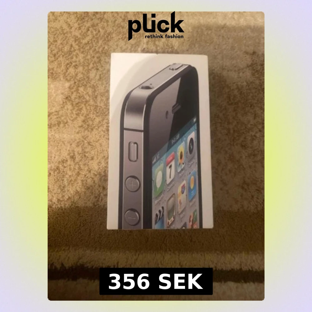 Säljer en vit iPhone 4S med originalkartong och laddkabel. Telefonen har klassisk design med hemknapp och 3,5-tums skärm. Skicket ser bra ut med mindre spår av användning. Perfekt som reservtelefon eller samlarobjekt. Laddkabeln medföljer.