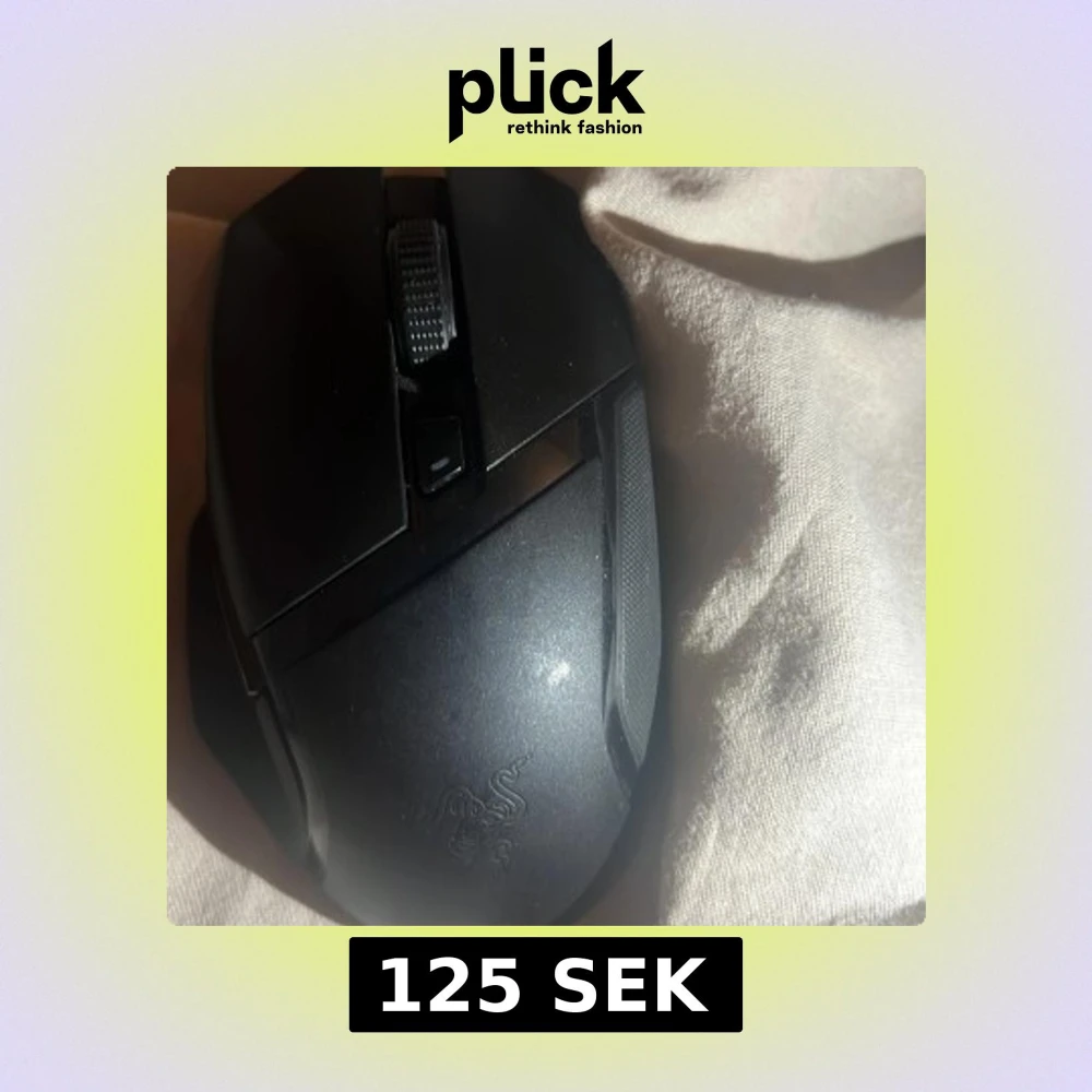Razer Basilisk X Hyperspeed trådlös gamingmus med upp till 16 000 DPI, Bluetooth och 2.4 GHz-anslutning. Ergonomisk design med sidoknappar och slitstark yta. Musen är i gott skick med minimalt synligt slitage, perfekt för gaming och produktivitet.