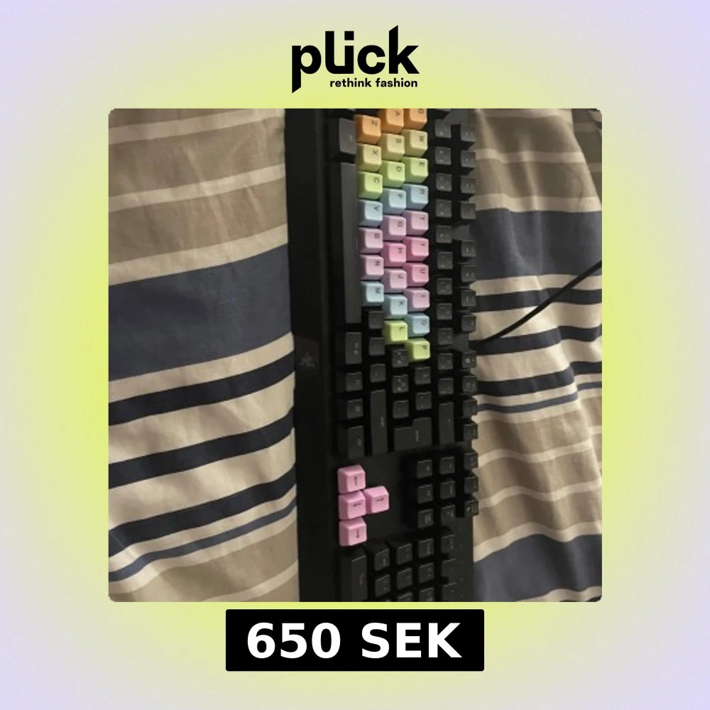 Razer BlackWidow X Chroma mekaniskt tangentbord. USB-anslutning, fullt fungerande och i bra skick. Jag har bytt utt några tangenter (dom färglagda) men fungerar precis som det ska. Tangentbordet lyser också i olika färger när det är påsat, kan skicka bilder på de vid intresse.