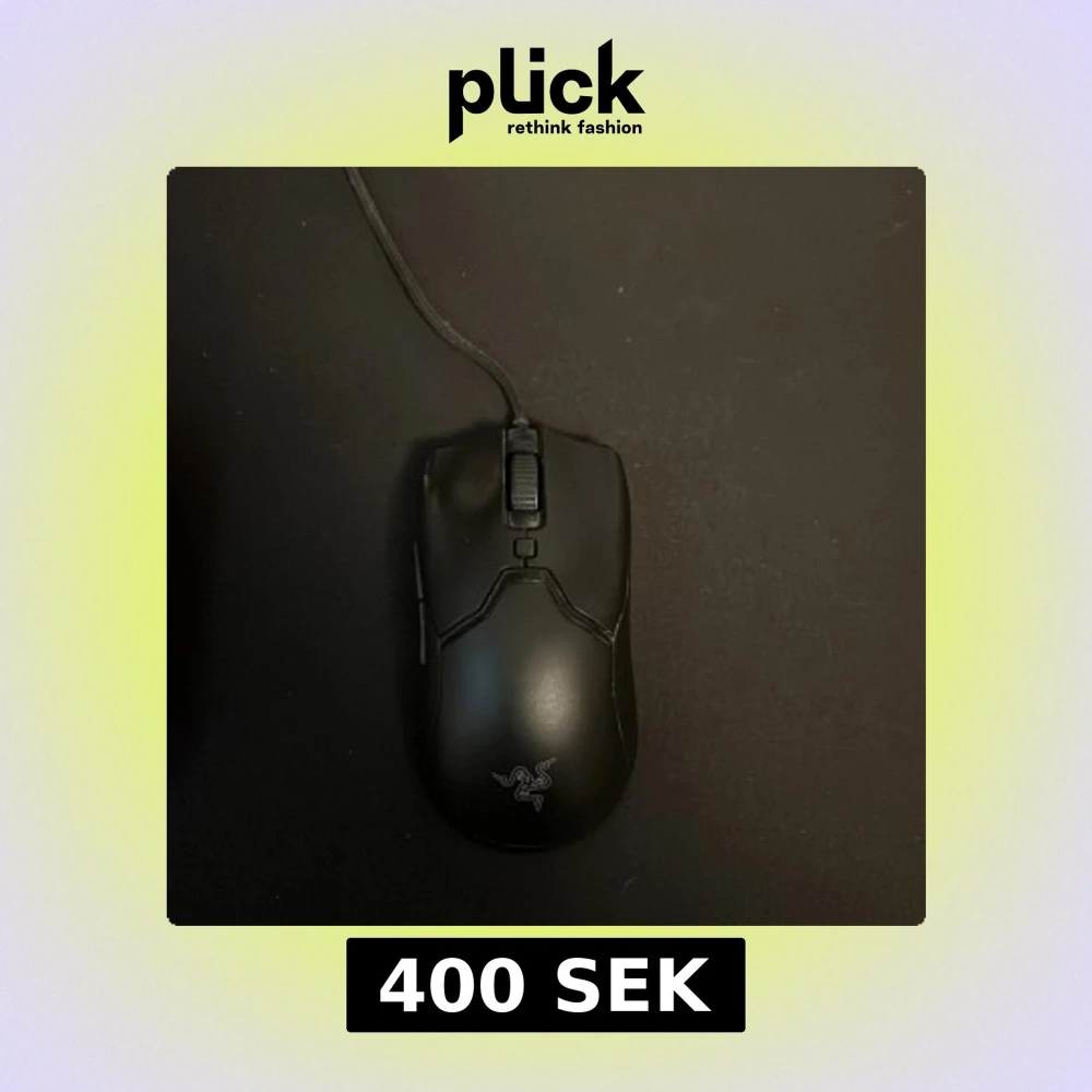 Razer Viper gamingmus med kabel, känt för sin lätta design och snabba respons. Svart färg med Razer-logotyp. Musen är i gott skick med mindre tecken på användning, inga synliga större repor eller skador. Perfekt för gaming och precisionsarbete.