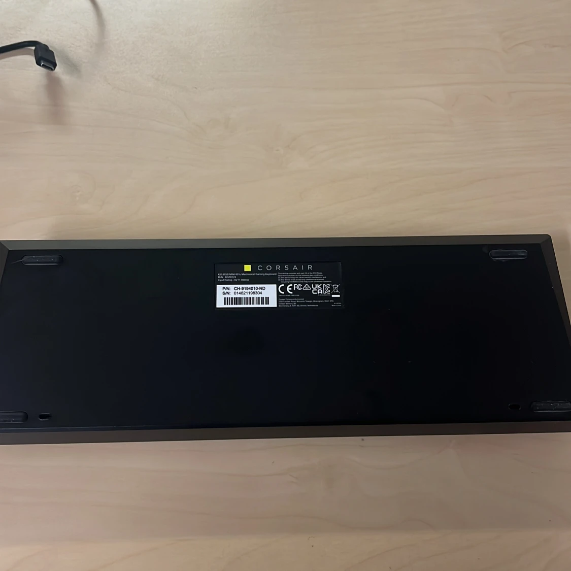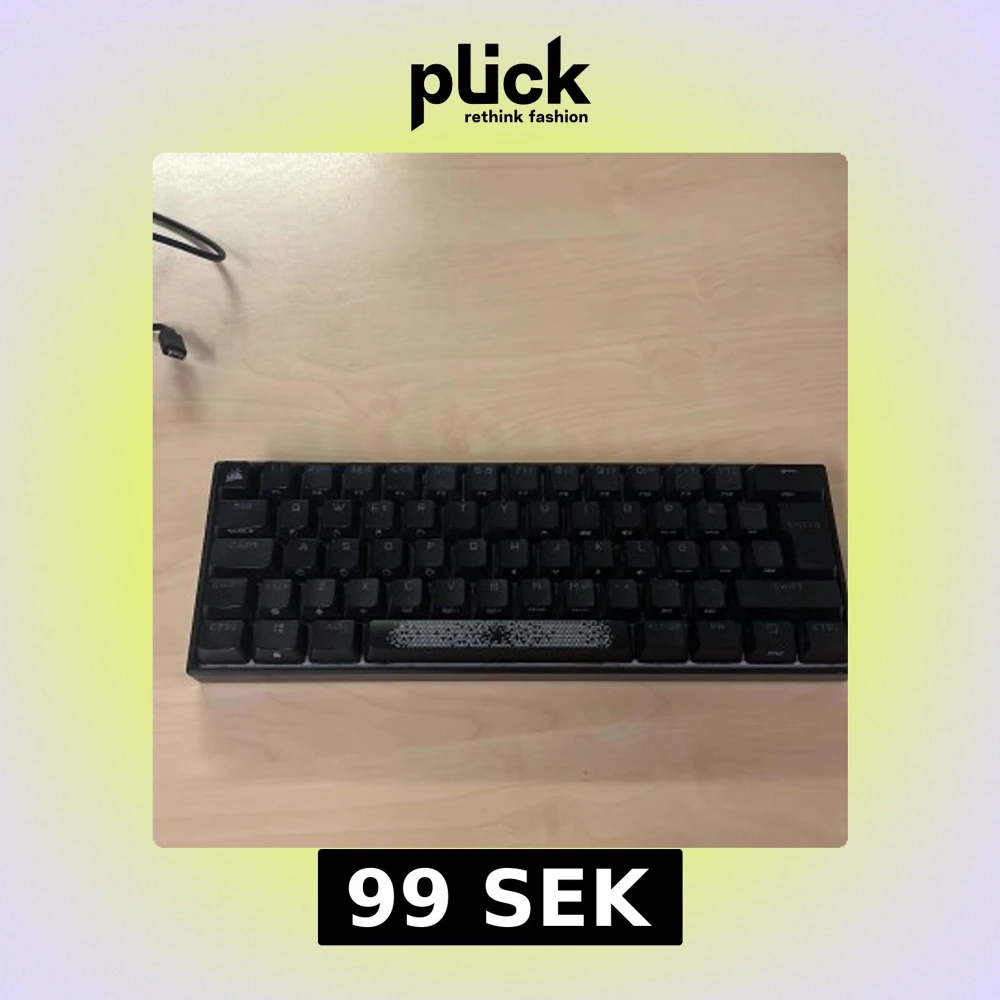 Kompakt mekaniskt tangentbord med RGB-belysning, perfekt för gaming och skrivbord med begränsat utrymme. Modell: K65 RGB MINI, 60% layout. Tangenter och chassi i gott skick, inga synliga defekter. Levereras med USB-C kabel.