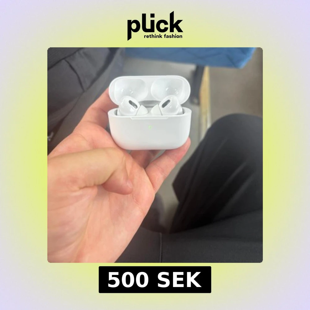 Apple AirPods Pro (2nd gen) med MagSafe-laddningsetui. Trådlösa hörlurar med aktiv brusreducering och transparensläge. Fodralet visar lättare ytslitage men fungerar bra. Hörlurarna är rena och i gott skick, redo att användas direkt.