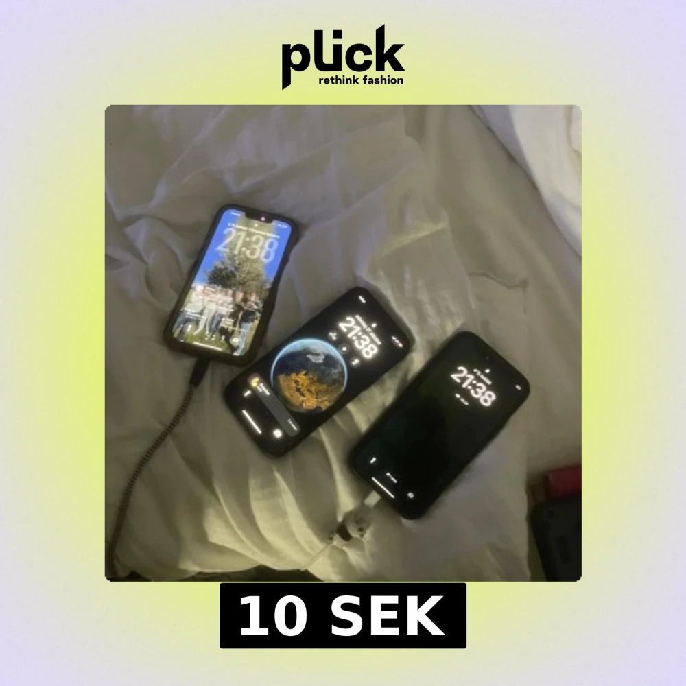 Tre iPhone 13 i gott skick, alla med aktiva skärmar och laddas. Skärmarna är fria från synliga sprickor eller större repor. Perfekt för dig som vill ha en pålitlig och modern mobil med snygg design och bra prestanda.