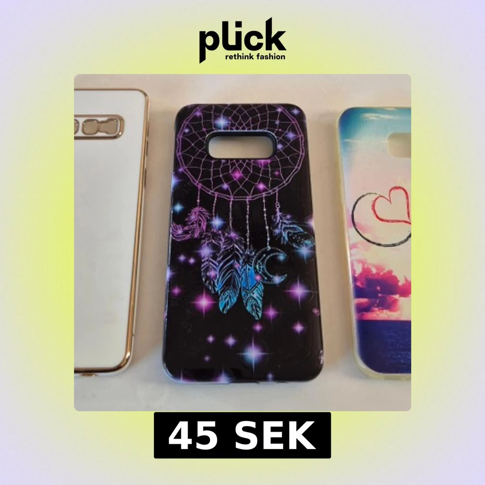 Samsung Galaxy S8 i vitt med gulddetaljer. Skärmen och baksidan ser hela ut, inga synliga sprickor. Säljs med unikt skal med drömfångare-motiv. Perfekt för dig som vill ha en snygg och pålitlig Android-telefon.