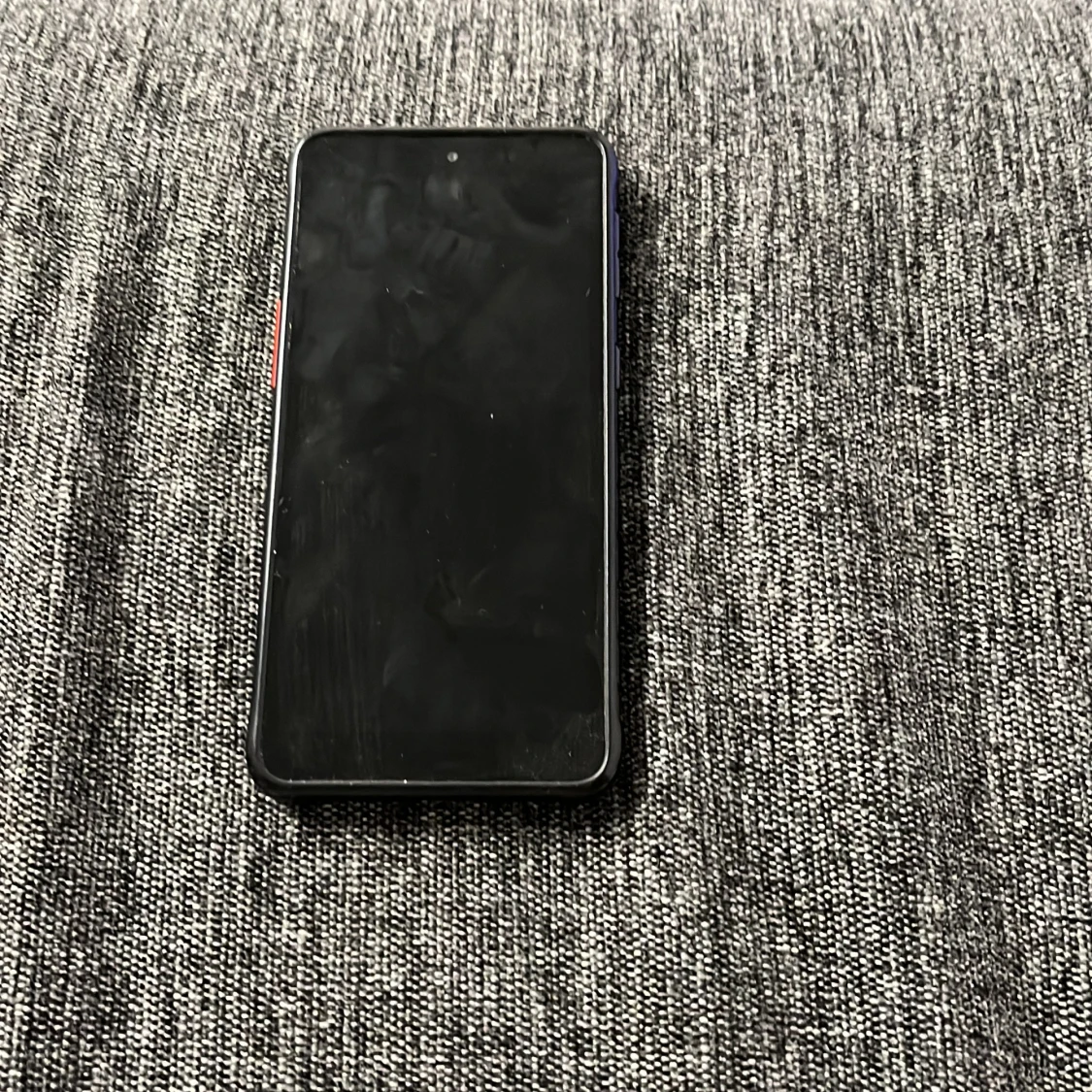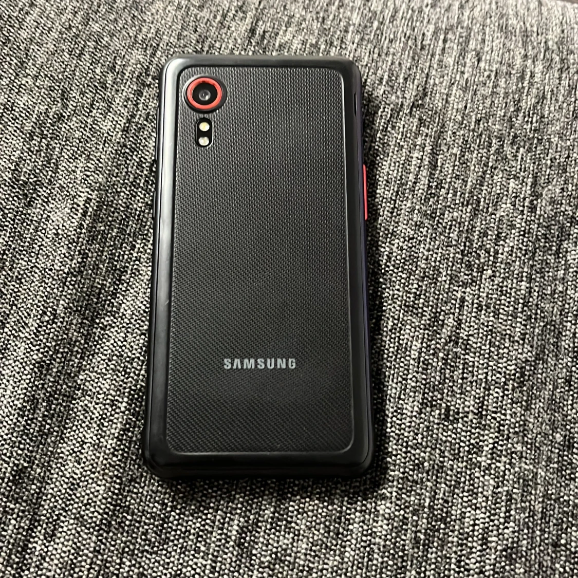 Robust Samsung Galaxy XCover med tåligt skal, perfekt för arbete och utomhusbruk. Skärmen har några fingeravtryck men inga synliga sprickor. Kameran och knapparna ser hela ut. Perfekt för dig som behöver en slitstark Android-telefon.
