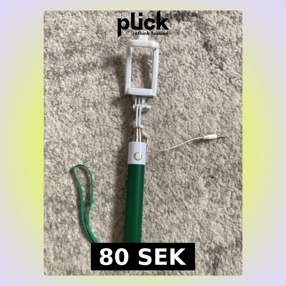 Selfiestick som man kan dra ut till ca 1 m. Enkel smidig att fälla ihop och ta med sig. Passar till de flesta telefonerna. Frakten är ca 22-100kr beroende på vikten på produkten . Kontakta mig om du vill köpa..