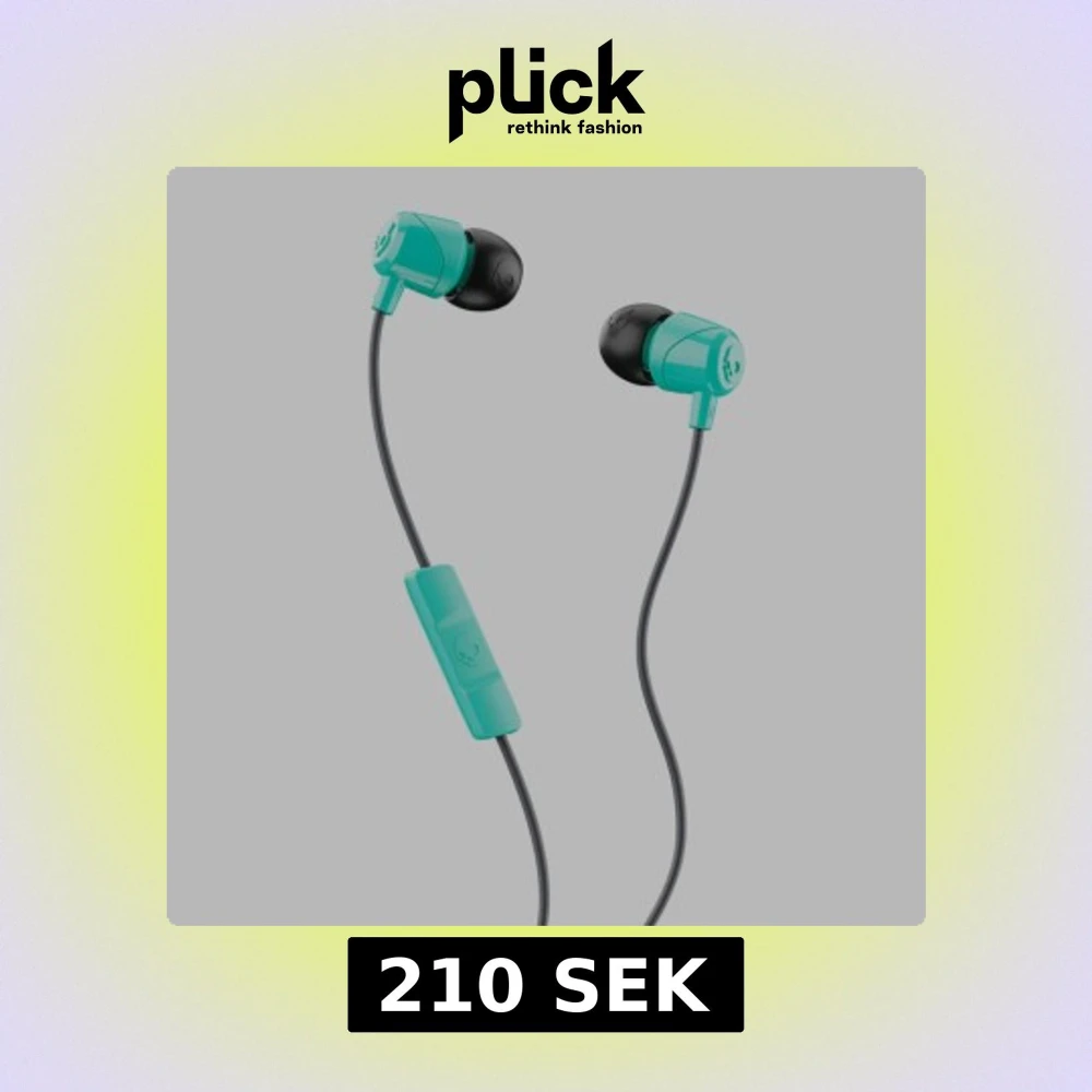 Färgglada Skullcandy Jib in-ear hörlurar med kabel och inbyggd mikrofon. Snygg turkos design, bekväma silikontoppar och tydlig ljudkvalitet. Perfekt för musik och samtal. Inga synliga defekter eller slitage.