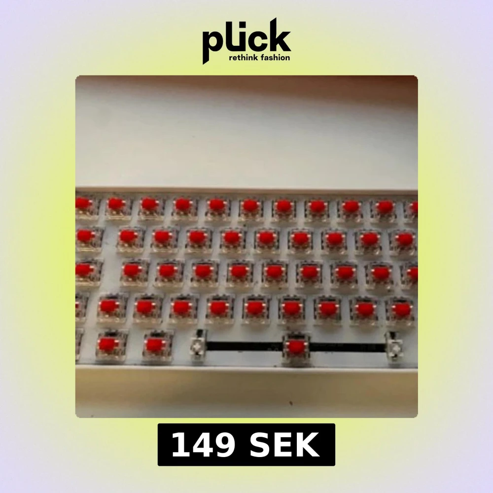 Snyggt mekaniskt tangentbord med röda switchar och röd LED-bakgrundsbelysning. Kompakt layout, vita keycaps och USB-anslutning. Tangentbordet ser ut att vara i gott skick utan synliga defekter eller slitage. Perfekt för gaming eller skrivarbete.