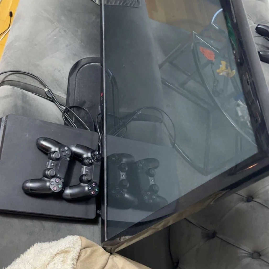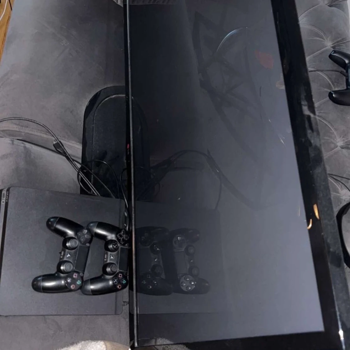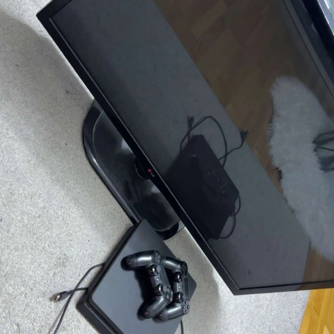 Sony PlayStation 4 Slim i gott skick, inklusive två original DualShock 4-handkontroller. Konsolen fungerar utmärkt och är perfekt för gaming. Mindre bruksspår kan förekomma, men inga synliga större defekter. Perfekt paket för spelkvällar! Dessutom en LG tv som funkar perfekt som skärm till konsolen