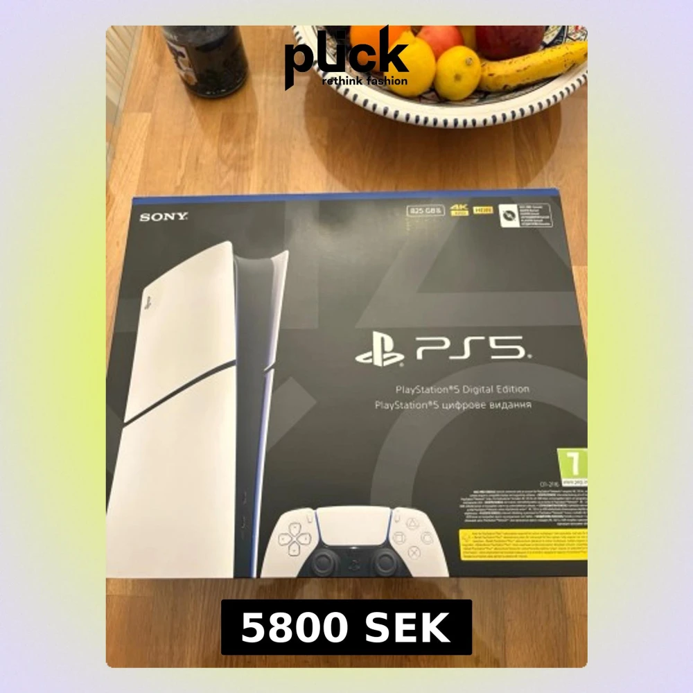 Sony PlayStation 5 Digital Edition med 825GB SSD, stöd för 4K och HDR. Konsolen är oöppnad. Säljer den för jag fick den när jag köpte en ny telefon och behöver den inte då för har redan ett ps 5.