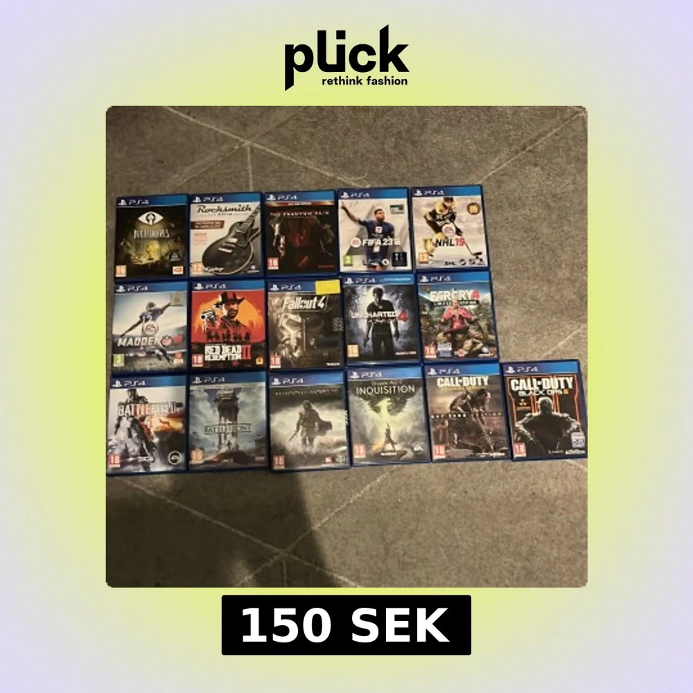 Stort paket med 16 PS4-spel, inklusive populära titlar som Red Dead Redemption II, FIFA 23, Battlefield 4, Uncharted 4 och Call of Duty. Alla fodral och skivor är i gott skick, perfekt för dig som vill utöka din samling med varierade genrer.