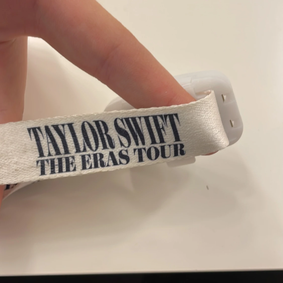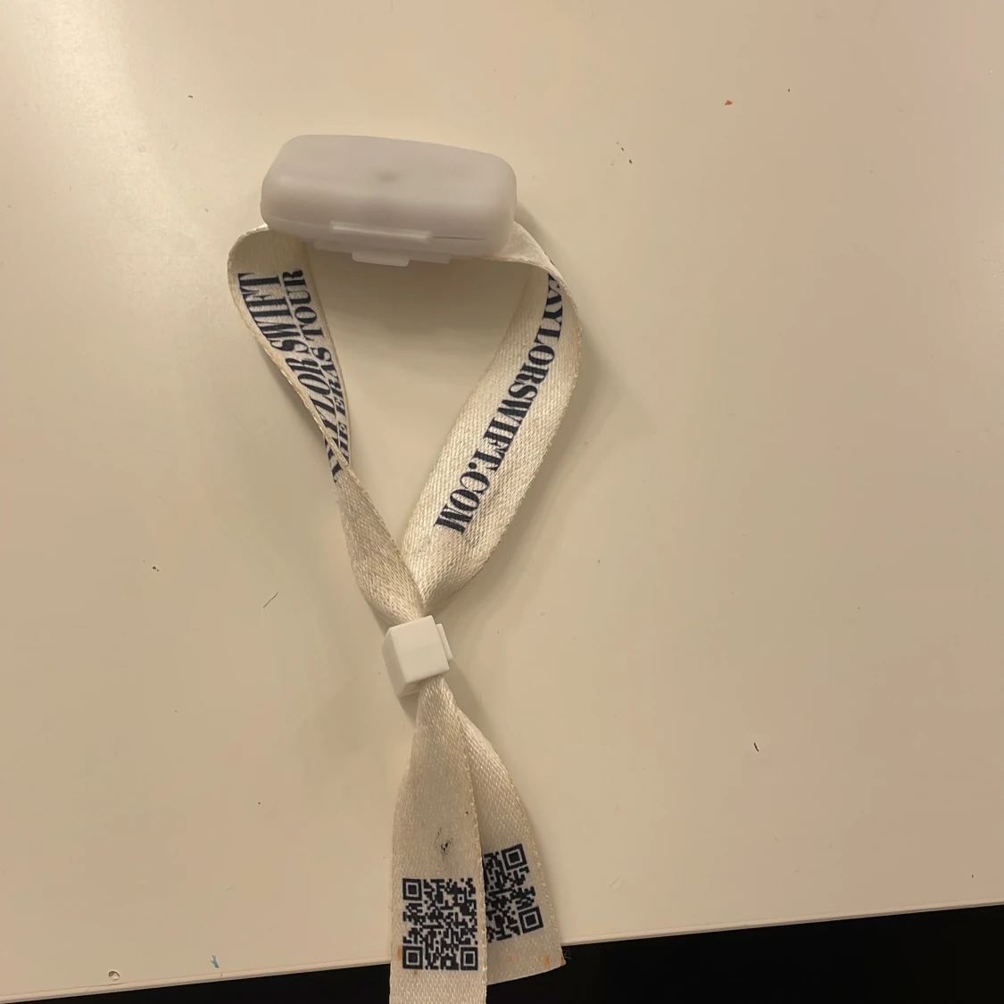 Officiellt LED-armband från Taylor Swift The Eras Tour. Armbandet har tygband med tryck och QR-kod, samt en vit plastenhet som lyser under konserter. Mindre tecken på användning, men i gott skick. Perfekt samlarobjekt eller minne från turnén.OBS! FUNKAR EJ