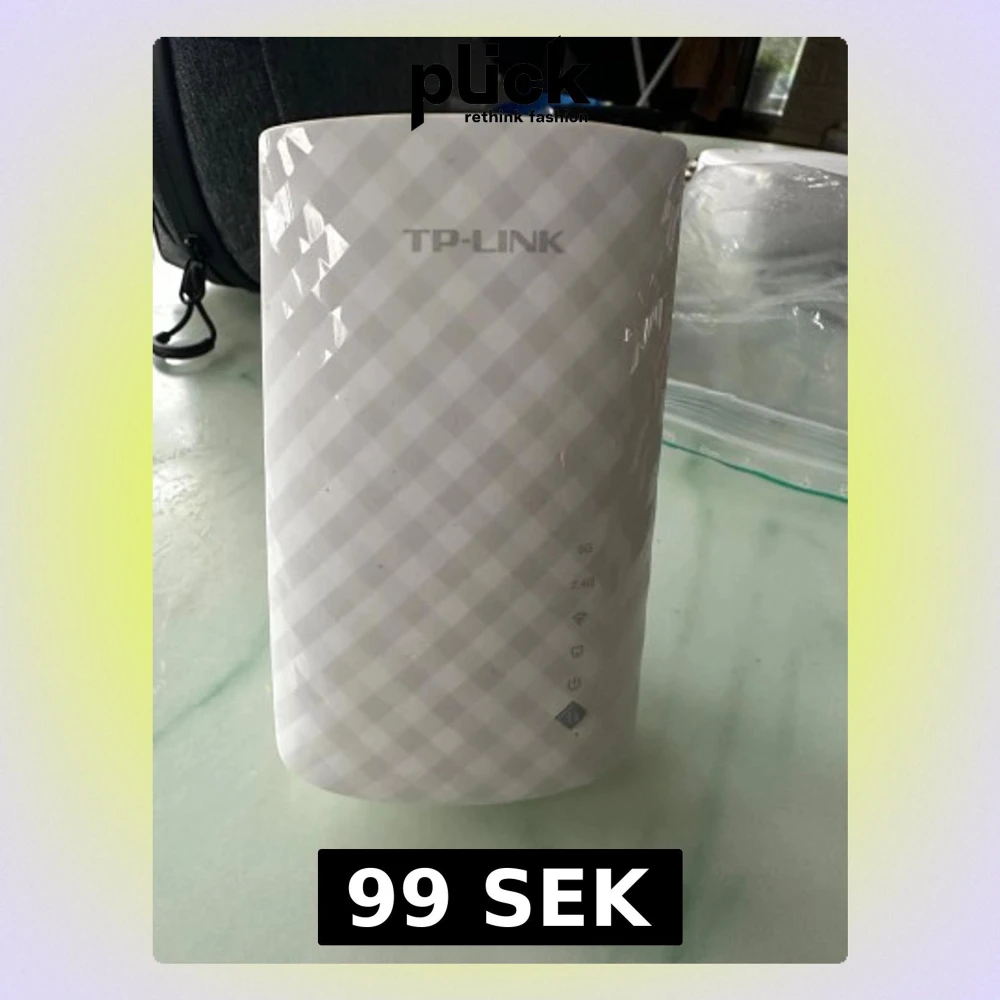 TP-Link RE200 AC750 WiFi Range Extender i fint skick. Stöd för både 2.4GHz och 5GHz, Ethernet-port och enkel installation. Perfekt för att förbättra WiFi-täckningen hemma. Inga synliga defekter eller slitage. Modell: RE200 (EU) Ver. 1.0.