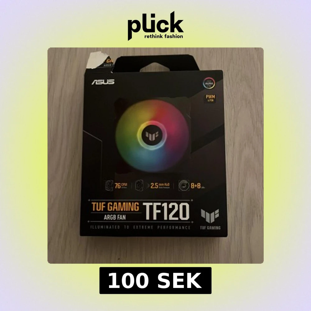 ASUS TUF Gaming TF120 ARGB fläkt med 76 CFM luftflöde, 2.5 mm H2O statiskt tryck och avancerad fluid dynamic bearing. Utrustad med dubbel LED-array för levande RGB-effekter och låg ljudnivå. Förpackningen har mindre skador men produkten är ny.