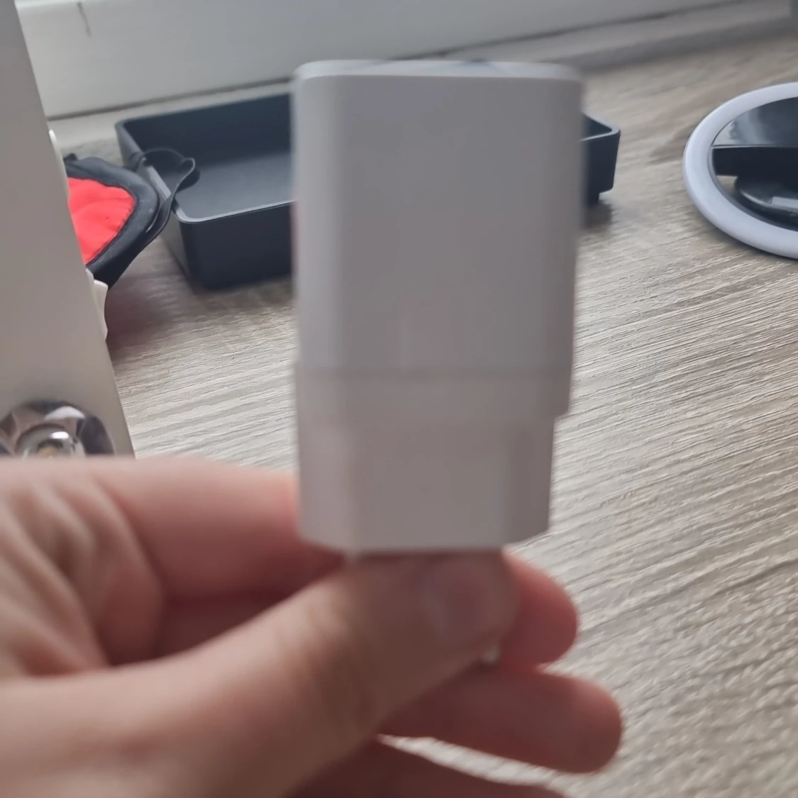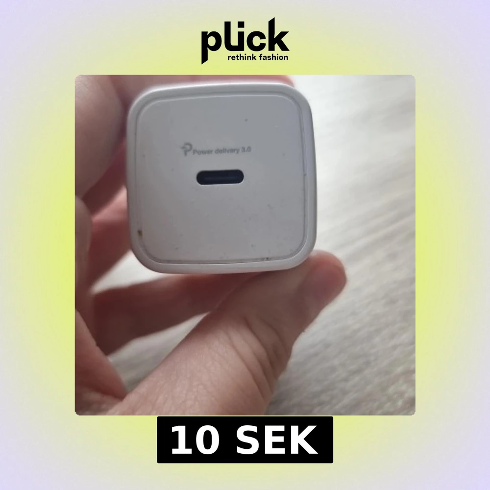 Kompakt USB-C väggladdare med Power Delivery 3.0 för snabb laddning av kompatibla enheter. Några mindre repor och smuts syns på ytan, men fungerar som den ska. Perfekt för mobiltelefoner, surfplattor och andra USB-C enheter.