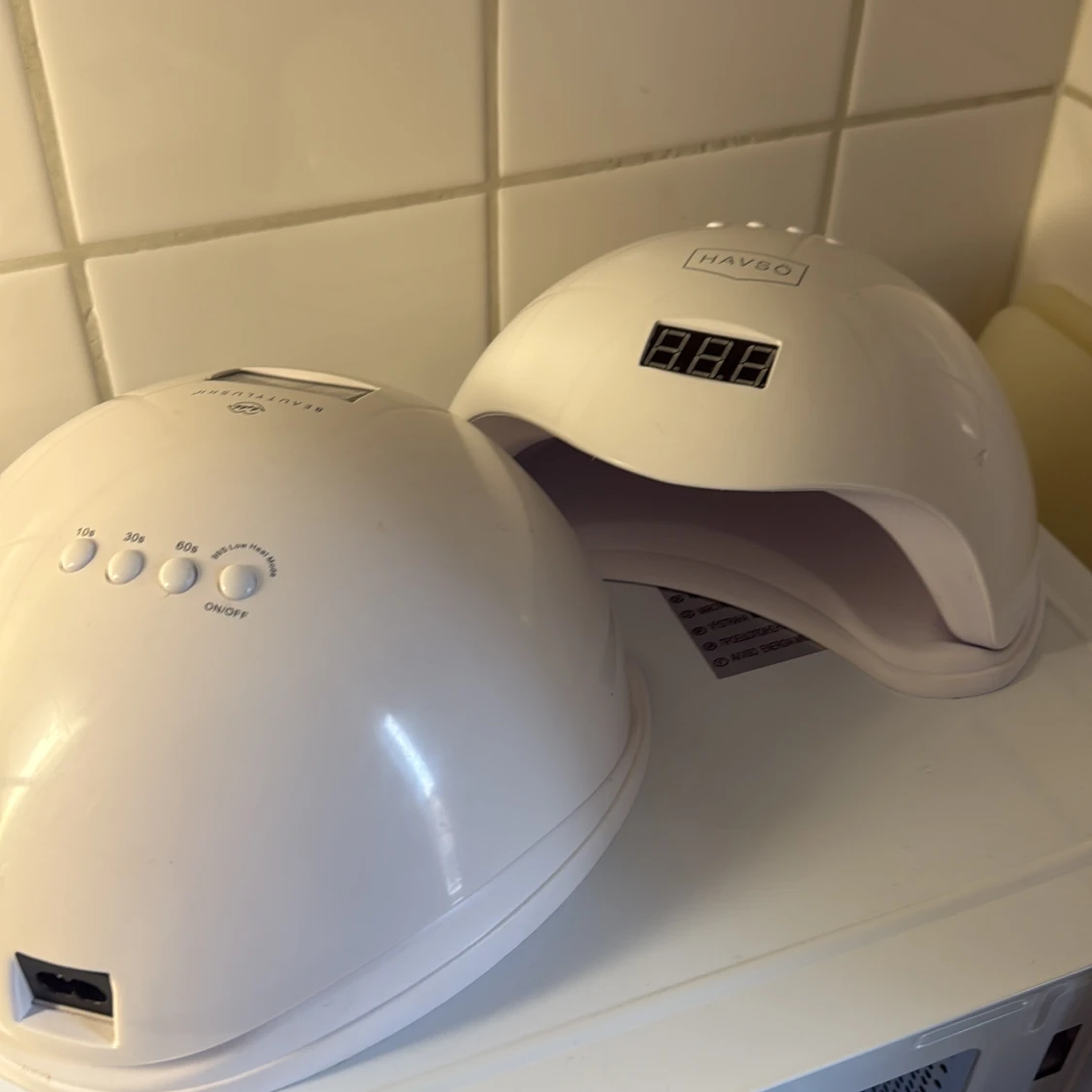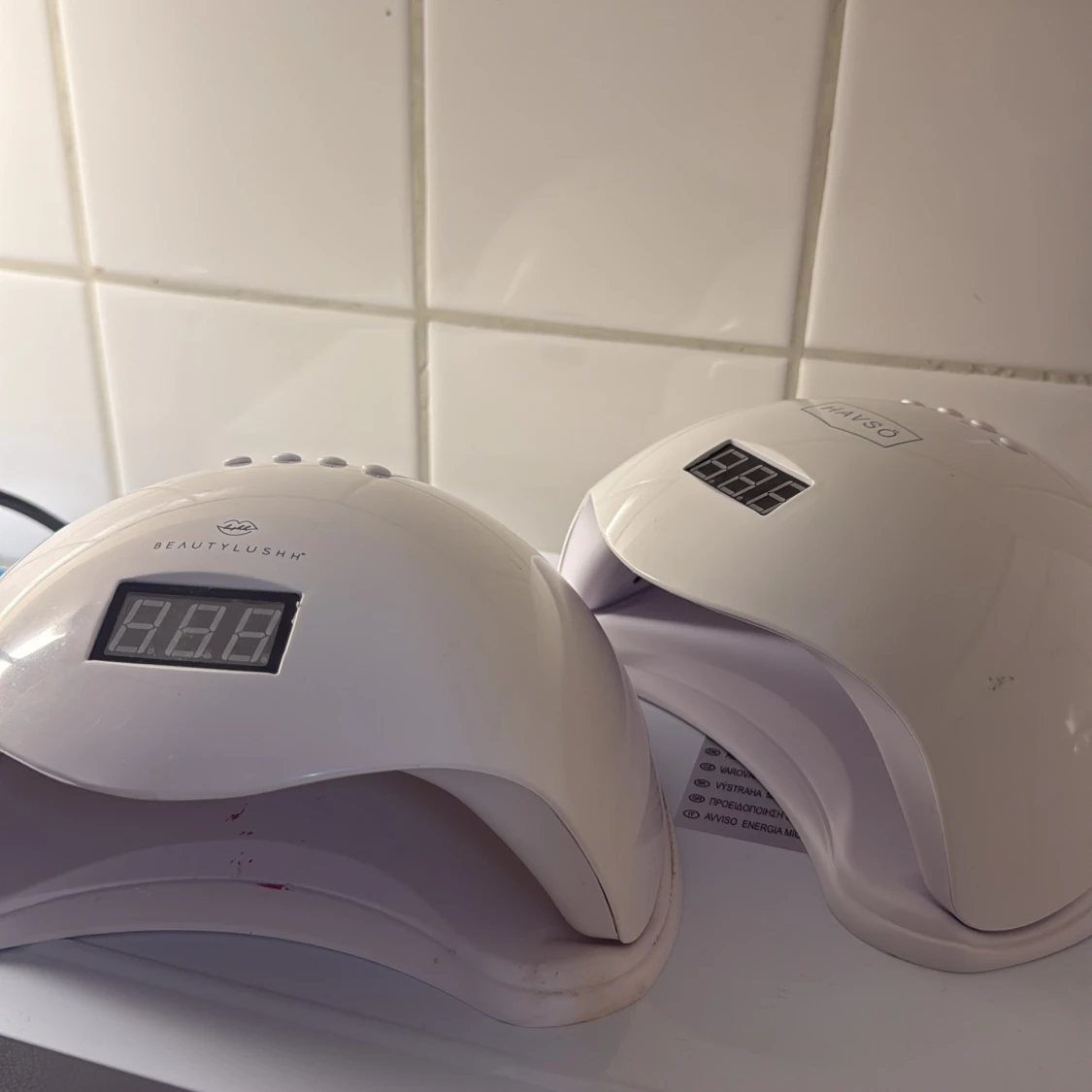 Två UV LED nagellampor med digital display och timerfunktion (10s, 30s, 60s). Perfekta för gelnaglar och manikyr. Båda lamporna är i fungerande skick, med mindre kosmetiskt slitage och några färgfläckar. Enkel att använda för både hemmabruk och salong. Fläckarna går att ta bort har bara ej tiden Elr orken säljs pågrund av att jag slutat göra naglar och drf bhvr sin nya ägare bara höra av sig.. pris går att diskutera.. 1 för 300 2 för 500🤍