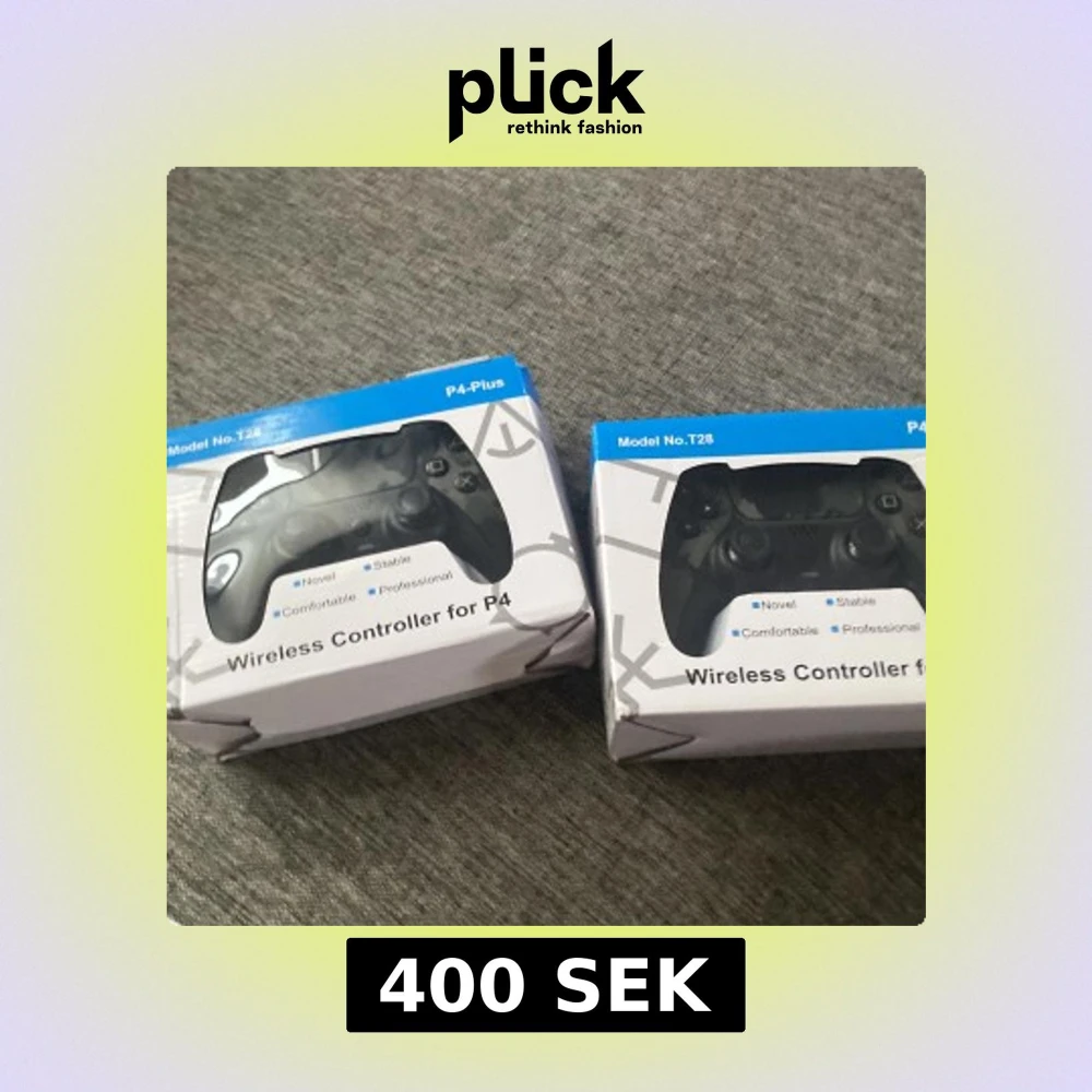 Trådlös handkontroll för PlayStation 4, modell T28. Ny i oöppnad förpackning. Ergonomisk design, stabil anslutning och professionell känsla. Perfekt för gaming. Kartongen har mindre skador men innehållet är nytt och oanvänt.