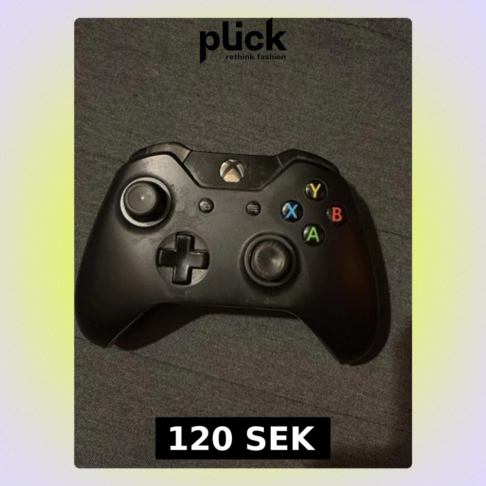 Trådlös Xbox One-kontroll i svart. Kontrollen har tydliga knappar och spakar, samt anslutning för headset. Något bruksslitage syns men fungerar utmärkt för spel på Xbox One eller PC. Perfekt för extra spelare eller som ersättningskontroll.