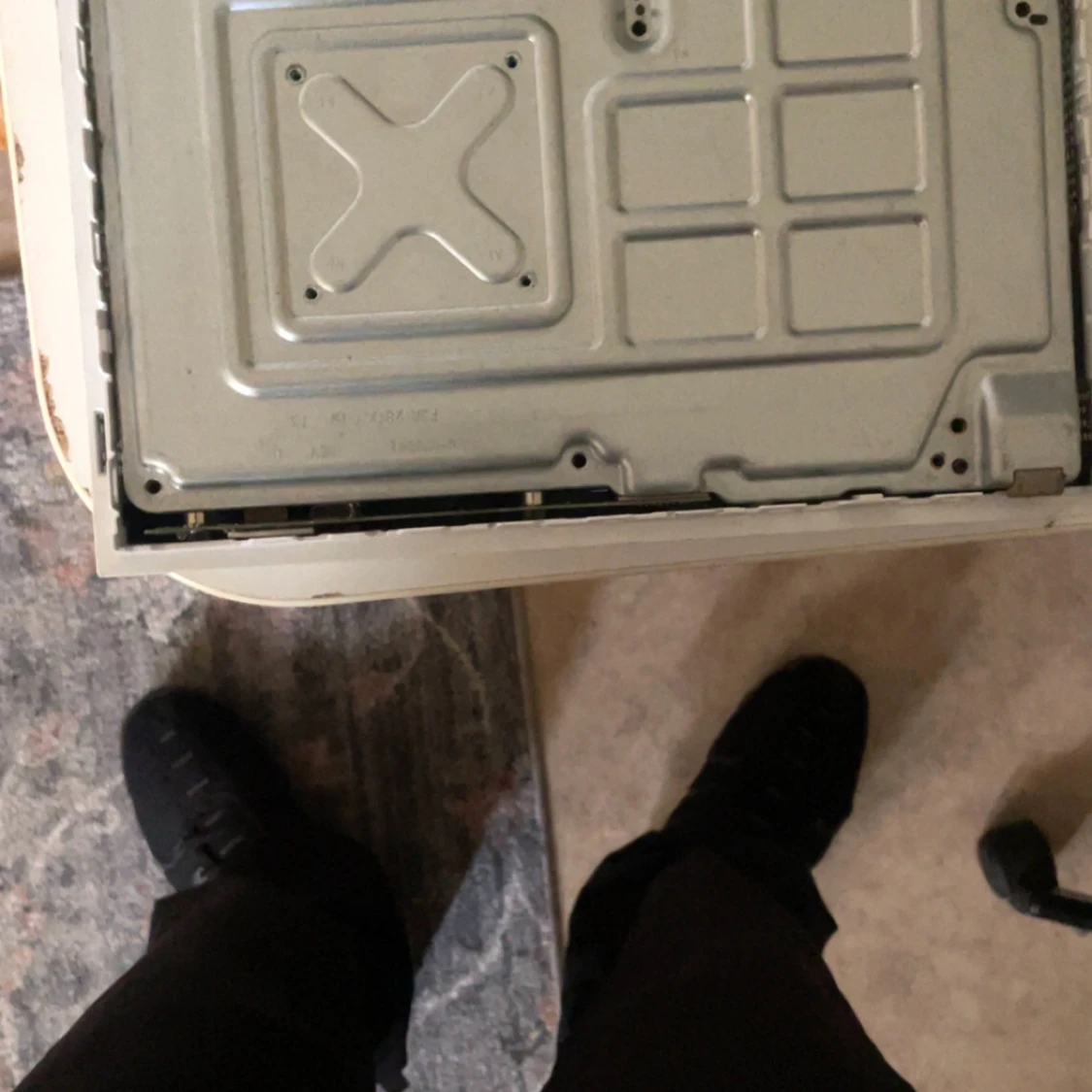 Xbox Series S i vitt utförande. Konsolen är kompakt och modern, men har synliga tecken på att den är öppnad eller delvis isärplockad. Perfekt för dig som söker en prisvärd spelkonsol, men var medveten om att skick och funktion kan behöva kontrolleras.