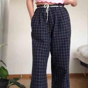 Fina rutiga vintage byxor som är snyggast ”over sized” köpta här på plick,dom var tyvärr alldeles för tajta. Bilderna är tagna av förra säljaren💕om dom ska sitta over sized skulle jag säga en small, me skärp. Men passar nog även M💗ca 78cm i midjan!