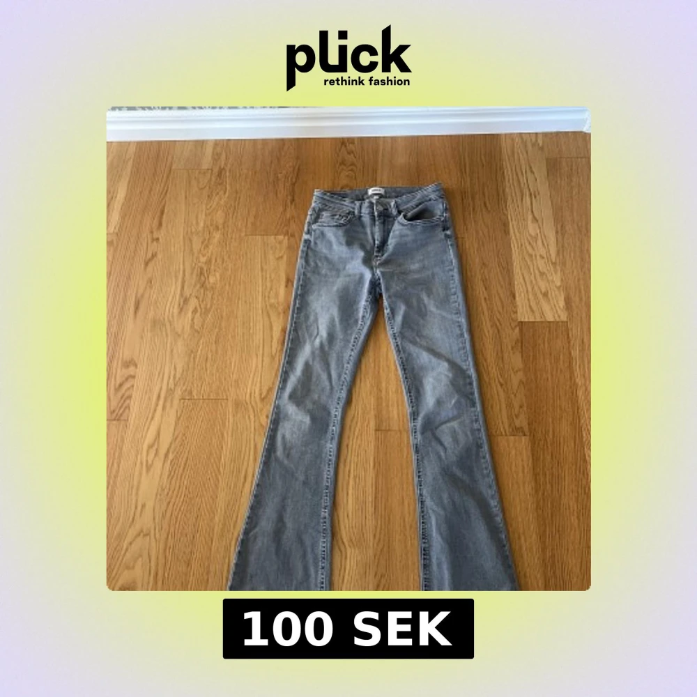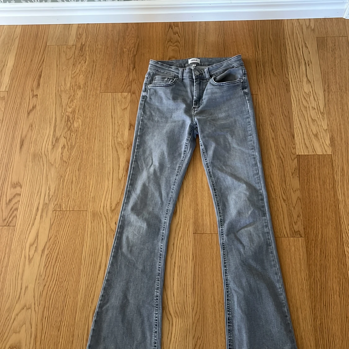 Snygga grå jeans från ONLY i bootcut-modell med klassiska fem fickor och dragkedja. Jeansen har en medelhög midja och är tillverkade i mjukt denimtyg med lite stretch för extra komfort. Perfekta för dig som gillar en retroinspirerad look.