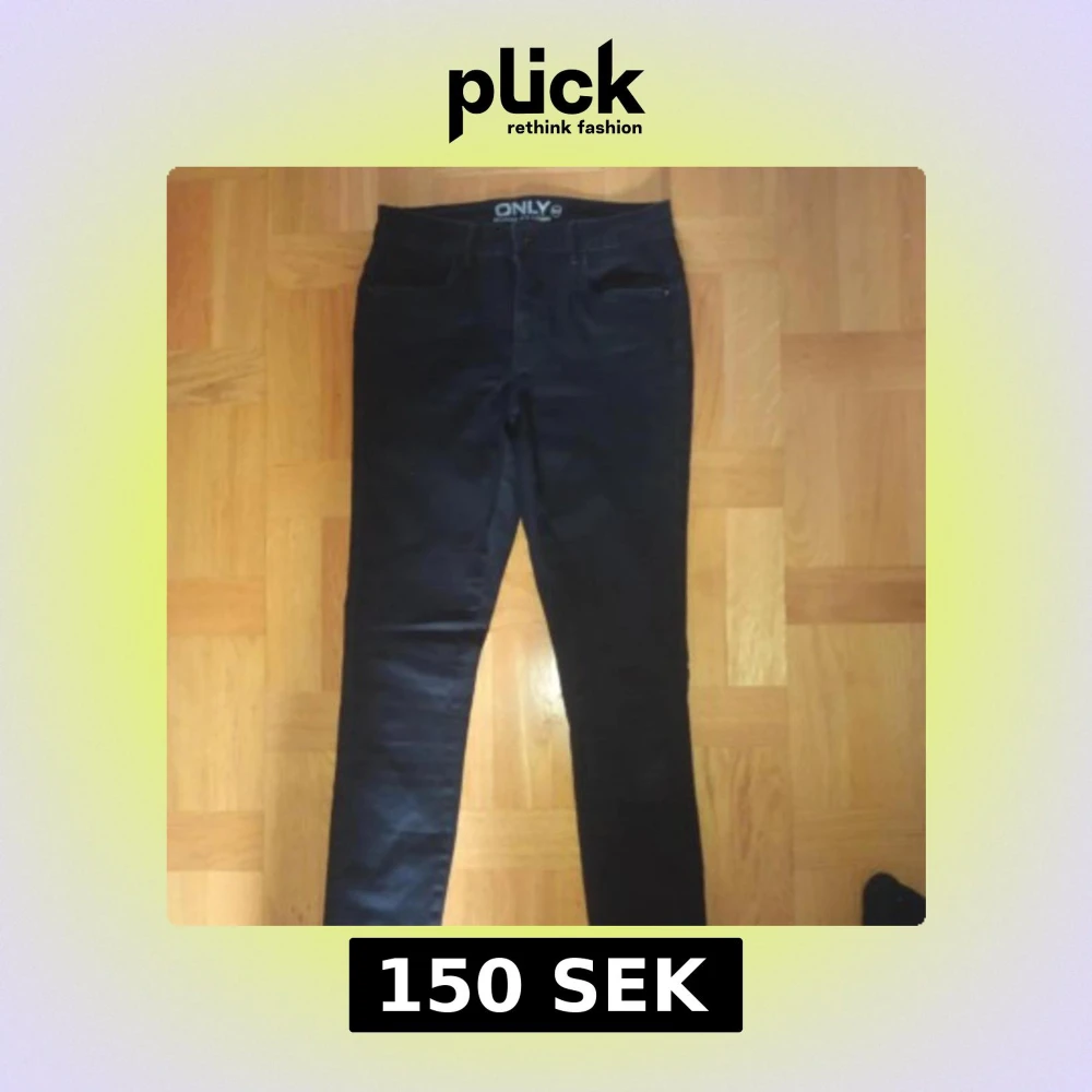 Säljer ett par svarta skinny jeans från ONLY med klassisk femficksdesign och knappgylf. Jeansen har hög midja och smal passform hela vägen ner. Perfekta till många olika outfits.