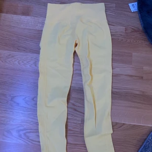 En gul och en mönstring träningsbyxa, aldrig använt