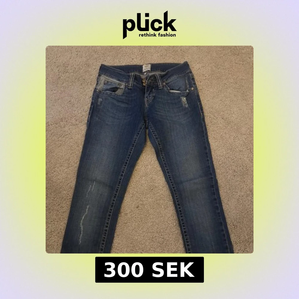 Snygga blå jeans från Rive Island med slitna detaljer och klassiska fem fickor. Jeansen har en mörk tvätt med ljusa partier och kontrastsömmar på bakfickorna. Perfekta för en avslappnad och trendig look. Även lågmidjade 💕