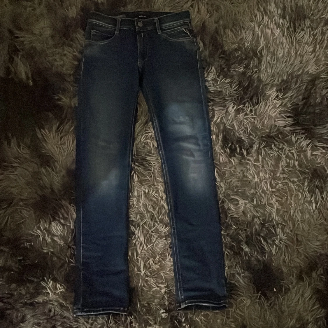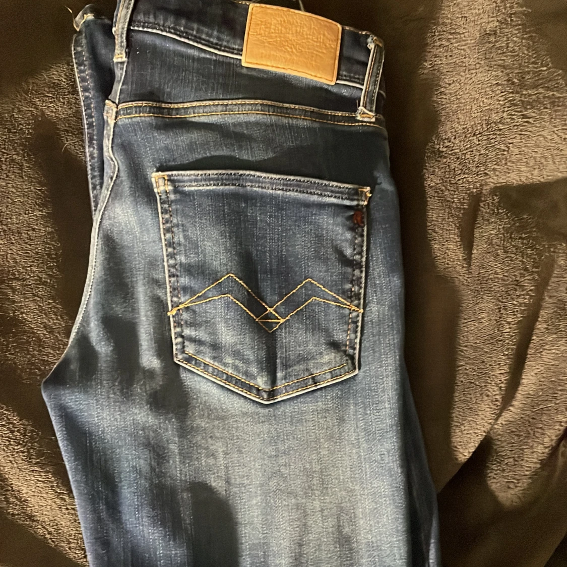 Säljer ett par snygga blåa Replay jeans. Snygga att ha i vardag och enkla att matcha med. De är super slim och modell hyperflex. Storlek 12A (150 cm) Dom lutar mer åt marine blått en ”vanlig blått” men ni får själv avgöra vad ni tycker.