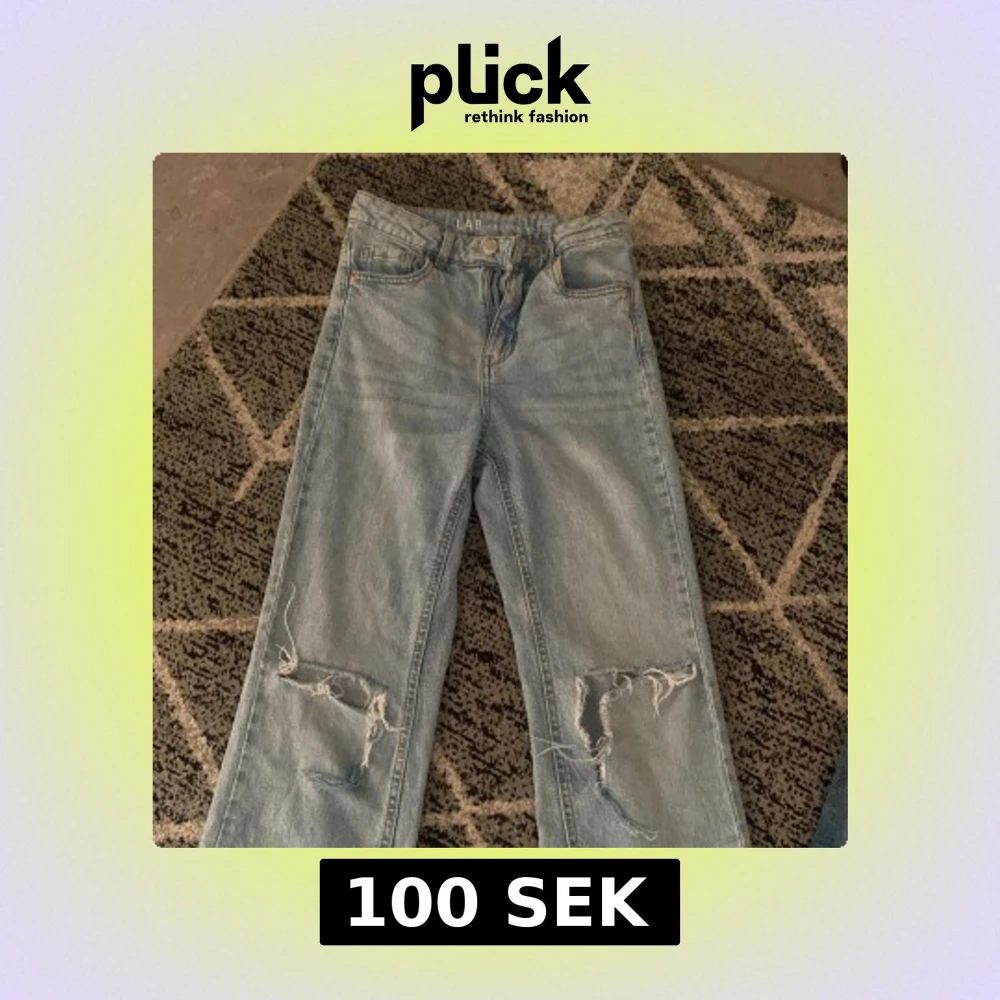 Säljer ett par ljusblå jeans från LAB Industries med raka ben och slitna detaljer vid knäna. Klassisk femficksmodell och knappgylf. Perfekta för en avslappnad och trendig look.