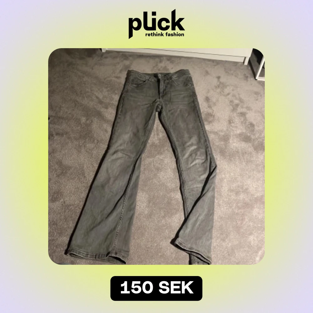 Gråa low waist boot cut jeans - Jätte fina gråa low waist jeans från Gina tricot i storlek 152, jag säljer dessa byxor därför att de är lite för tighta och för korta på mig. Priset kan diskuteras!