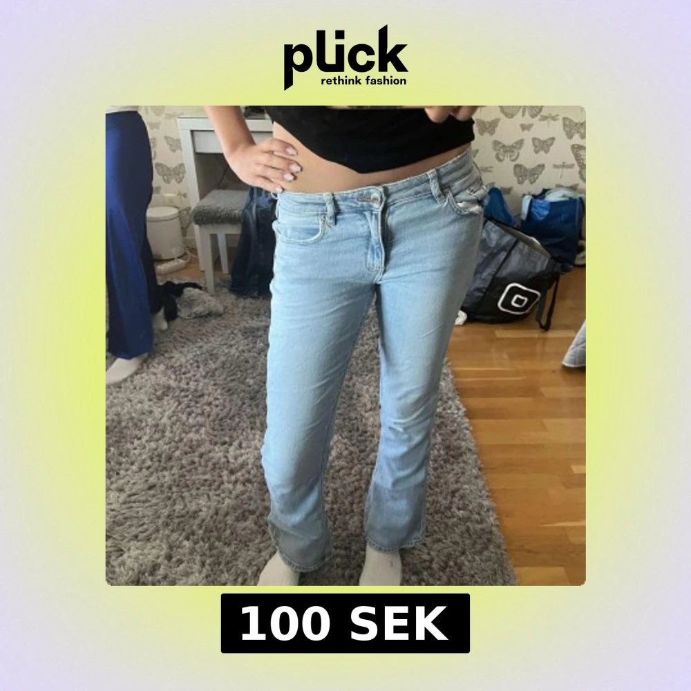 Säljer ett par ljusblå jeans med bootcut passform och låg midja. Dem är super snygga💕men har ett hål i vid ena bakfickan. Men syns knappt. Hålet är vid bild 4.
