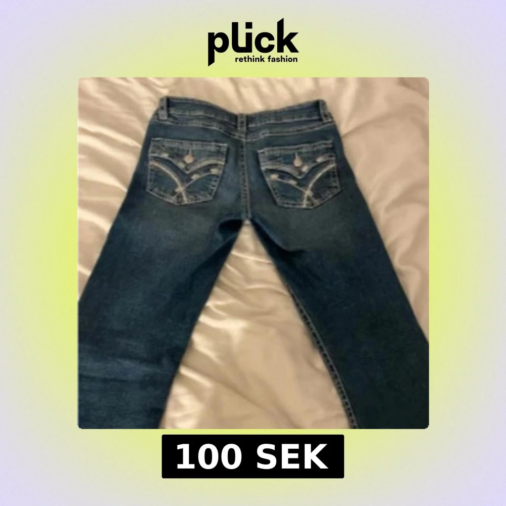 Blå jeans med broderade bakfickor