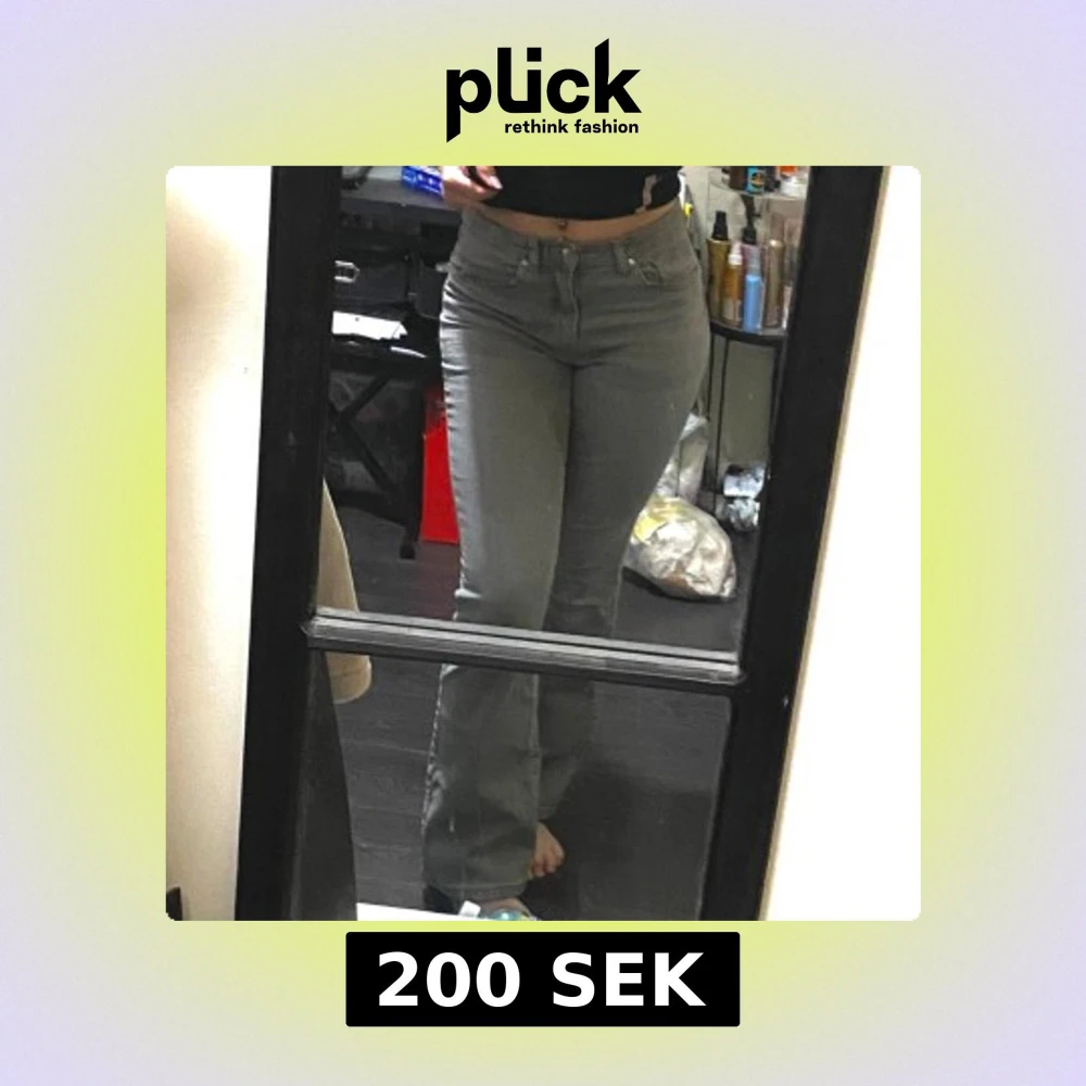 Grå jeans som är utsvängda och mid-waist, jättefina men tyvärr lite små i midjan för mig. Storlek 170, passar xs-s 🌸 jag har vanligtvis s-m i byxor, därav att de ej passar. Längden är perfekt för mig på 165cm, mellan 160-170 är nog perfekt längd. Knappt synlig fläck på baksidan av låret, se bild. Hör av dig vid frågor eller intresse🌸🌸