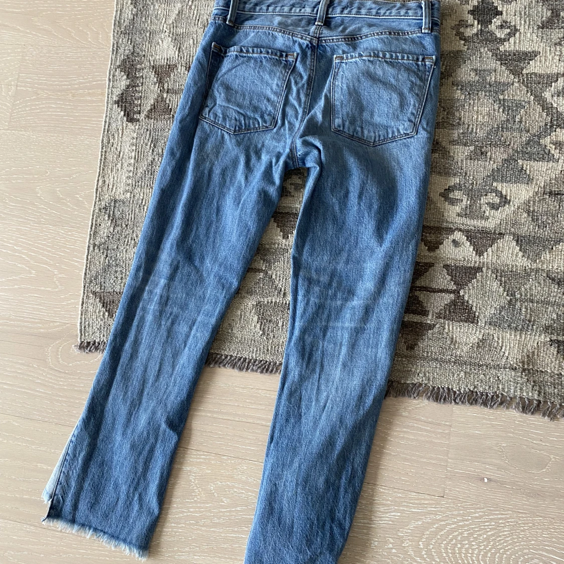Modell: aubrie high rise crop Storlek: 24 (men jag skulle säga att de är snarare en 26a) Material: 81% bomull och 19% lyocell Skick: lite nött vid rumpa och insidan lår efter användning.