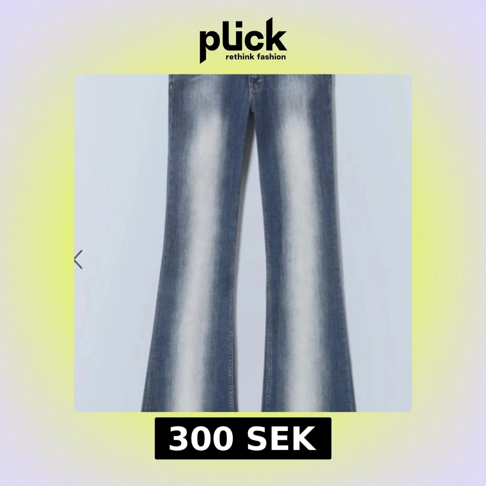 Blå bootcut jeans  - Säljer ett par ljusblå bootcut jeans med låg midja. Jeansen har klassisk femficksdesign, snygga slitningar på bakfickorna och raka, vida ben.