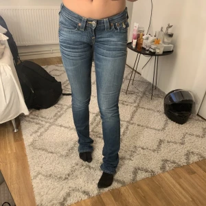 Ljusblåa Låg midjade True religion jeans  - Säljer nu mina ljusblåa true relgion jeans i storlek 28 pågrund av att dom är för stora på mig💔 Har använt dom cirka 4 gånger och ser helt nya ut. Jag köpte dom för 1299Kr, och säljer dom så jag kan köpa exakt likadana fast annan storlek därav priset. Priset kan diskuteras och fler bilder finns om du önskar!