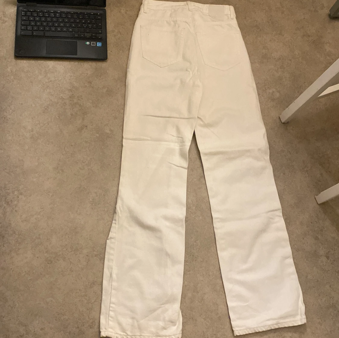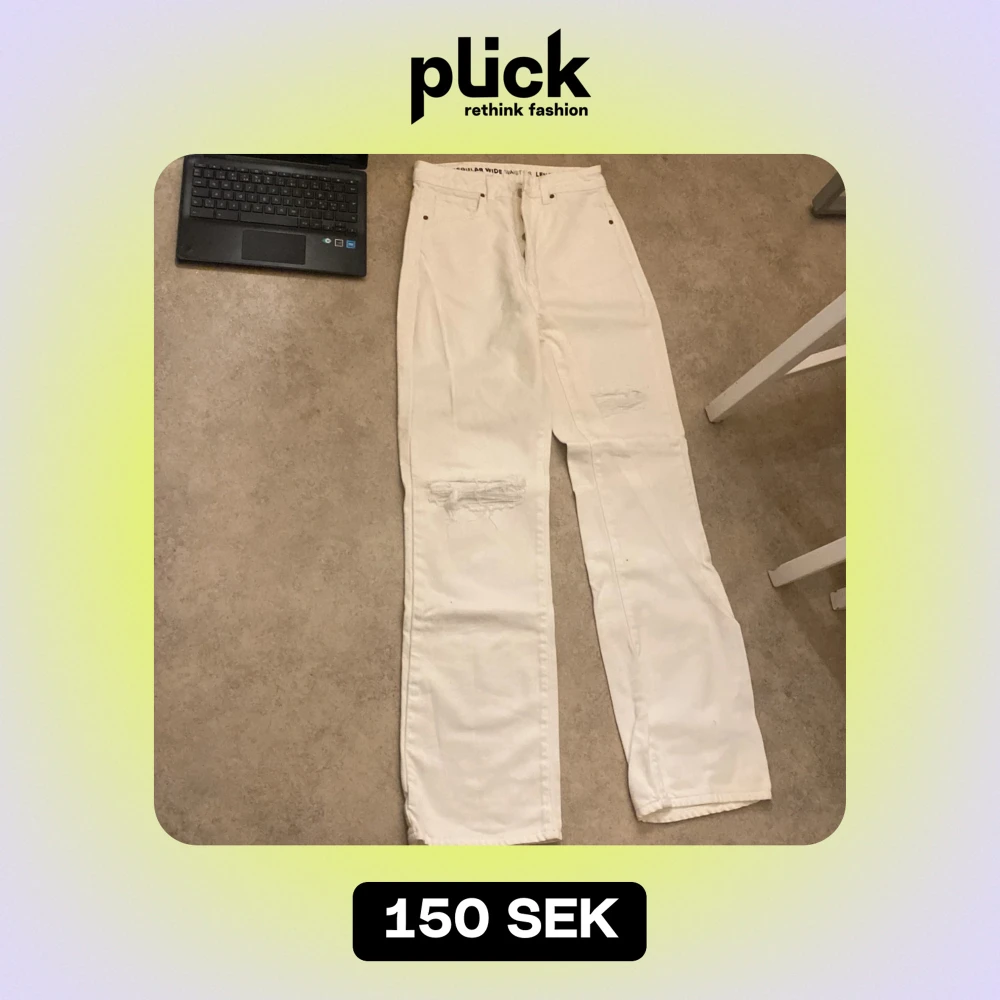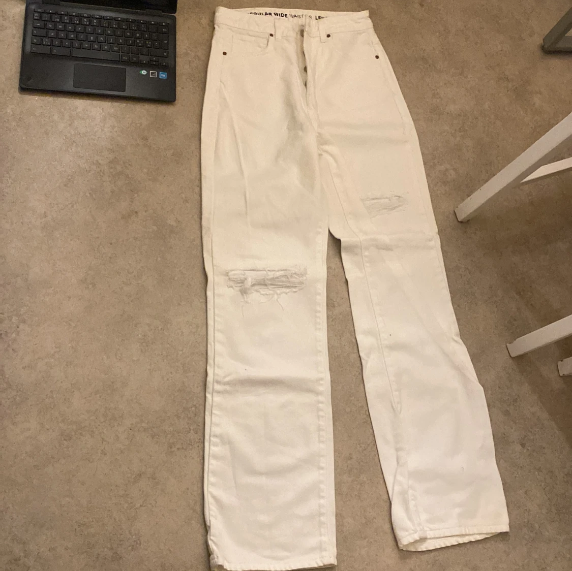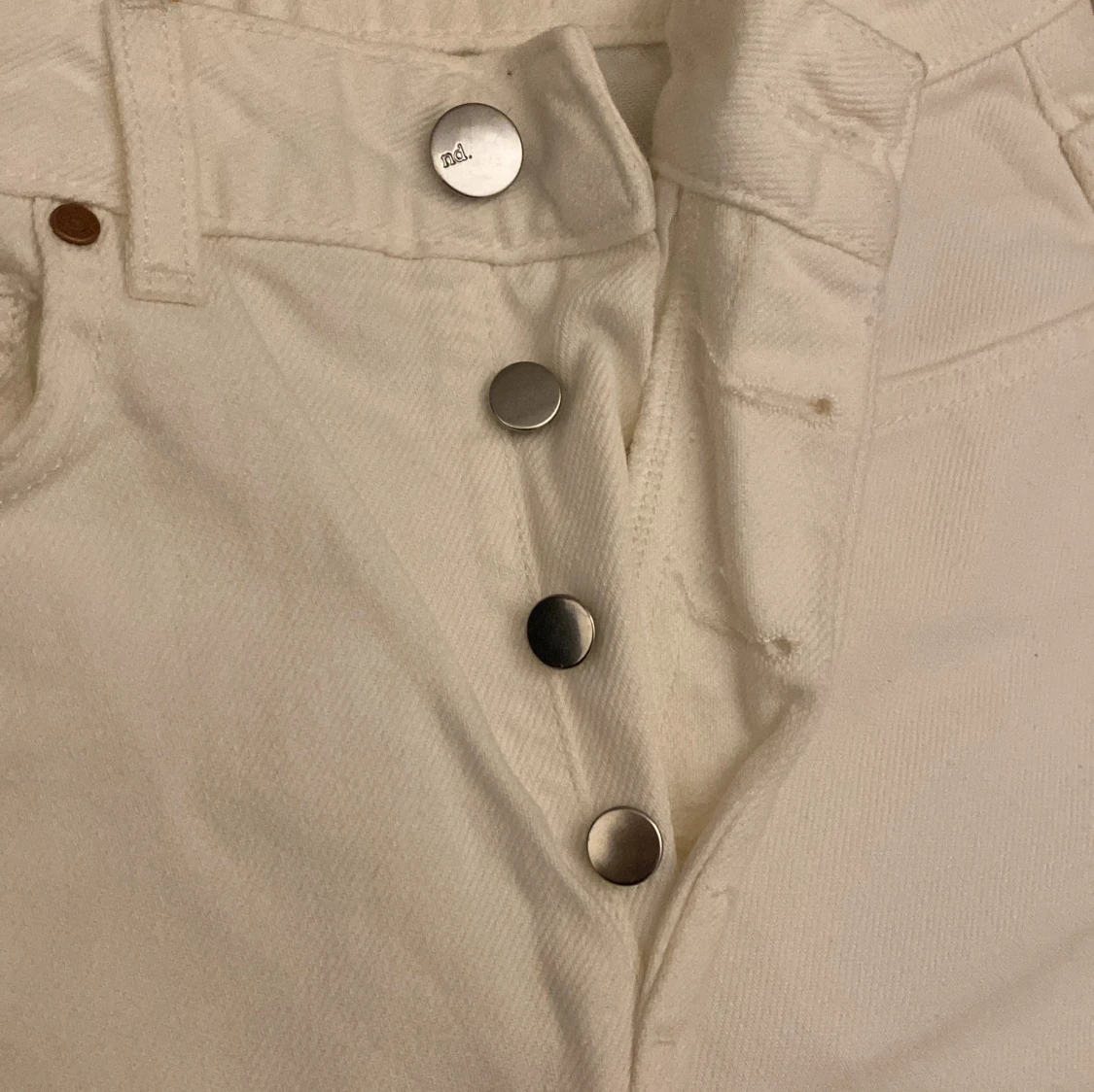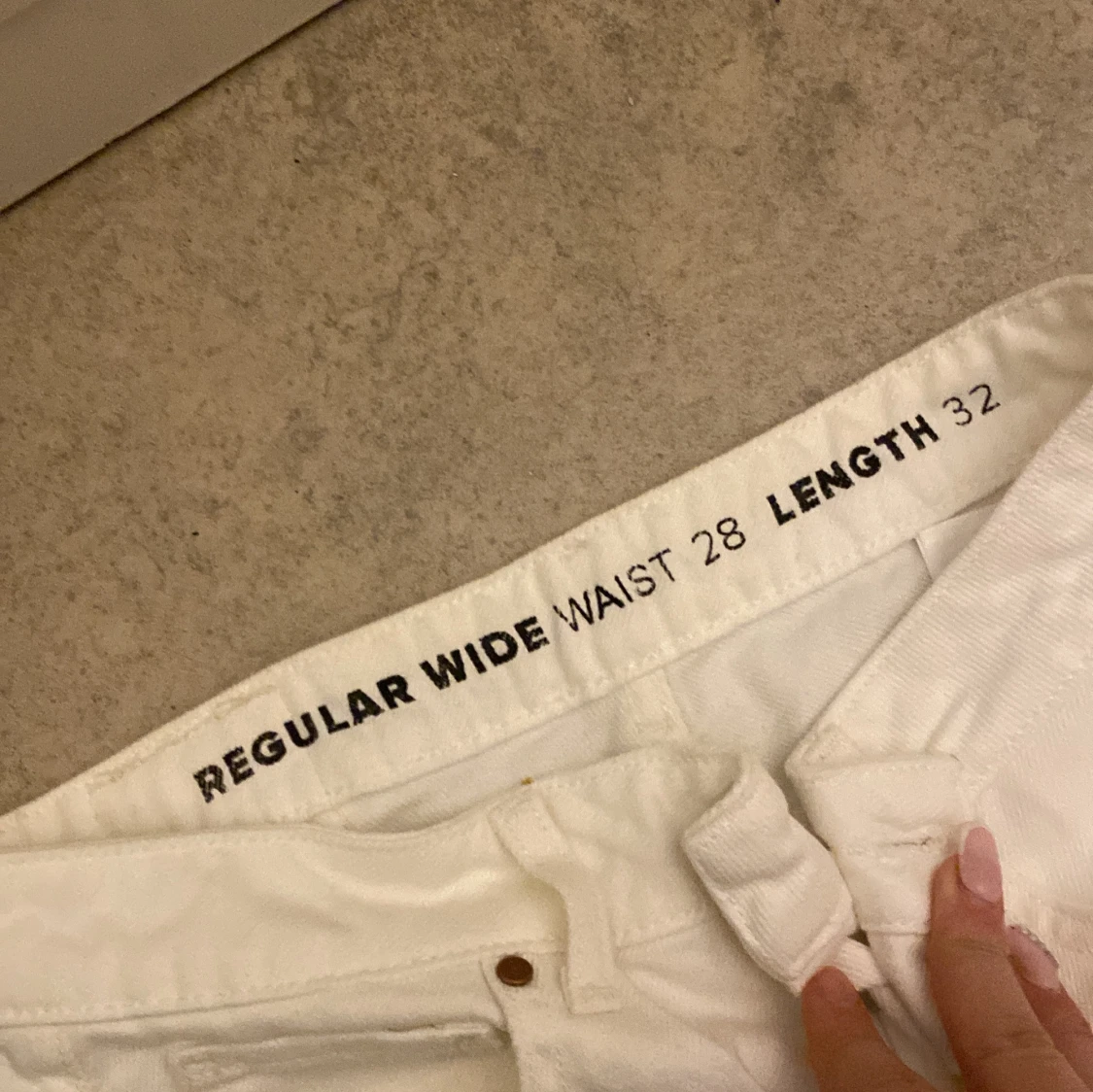 Säljer ett par vita jeans i regular wide fit. De har en cool knappgylf och är i bra skick. Perfekta för en avslappnad stil och passar till alla säsonger. De har en klassisk look med en modern twist. Perfekta för både vardag och fest!