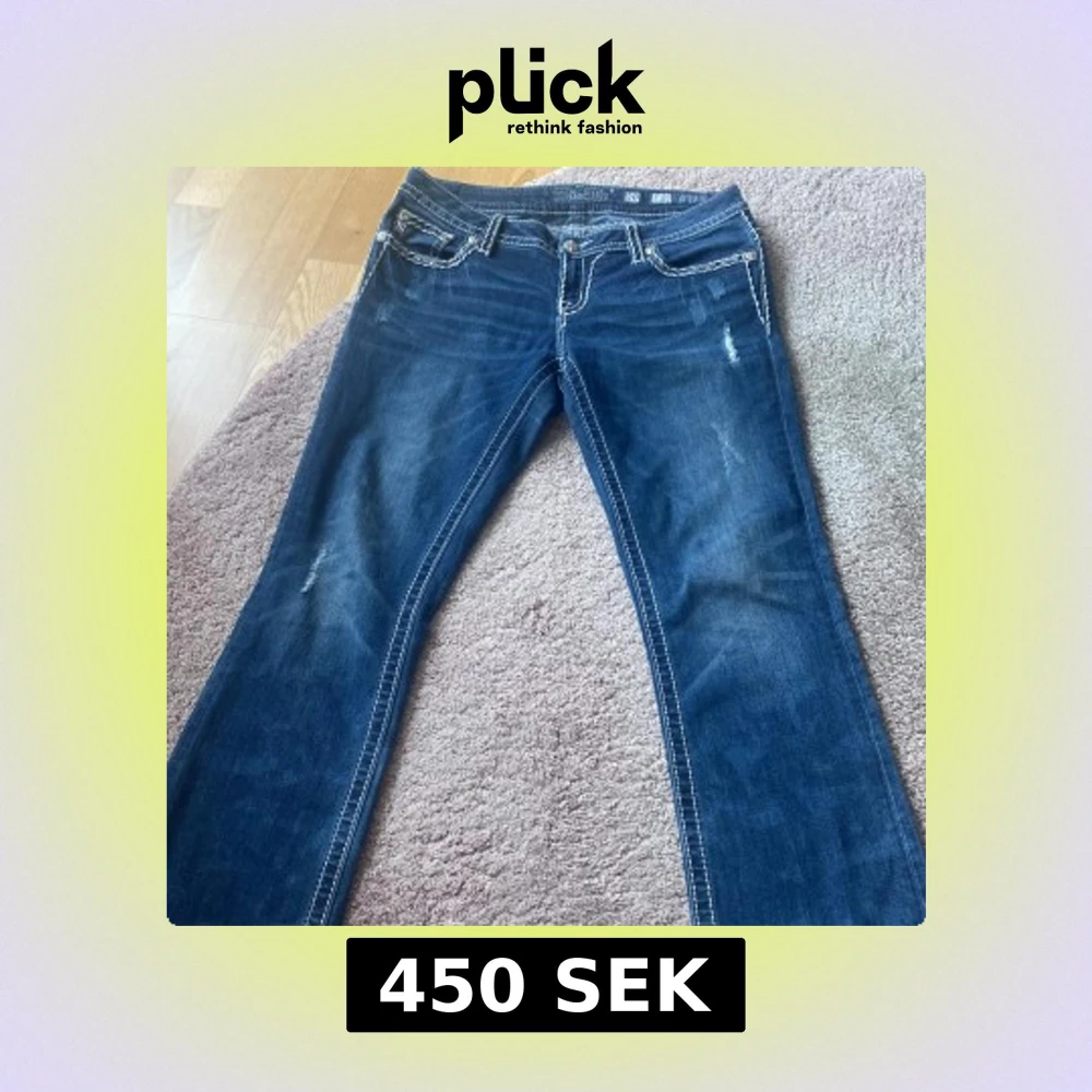 Blå bootcut jeans från Miss Me - Snygga blå bootcut jeans från Miss Säljer för dom kom inte till användning, köpte på plick , inte mina bilder så skriv om ni vill ha egna bilder eller fler bilder. Jeansen e lågmidjade