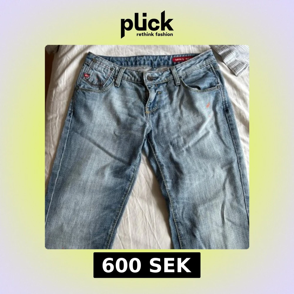 Skit snygga miss sixty ljusblåa lågmidjade jeans i storlek 29, dom är väldigt lågmidjade med en väldigt cool design. Priset kan diskuteras💕