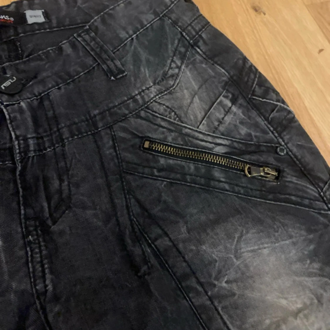 Snygga svarta byxor från Nesal i 100% bomull med coolt tvättad look och flera dragkedjedetaljer både fram och bak. Byxorna har raka ben och markerade sömmar som ger en unik stil. Perfekta för dig som vill sticka ut lite extra.